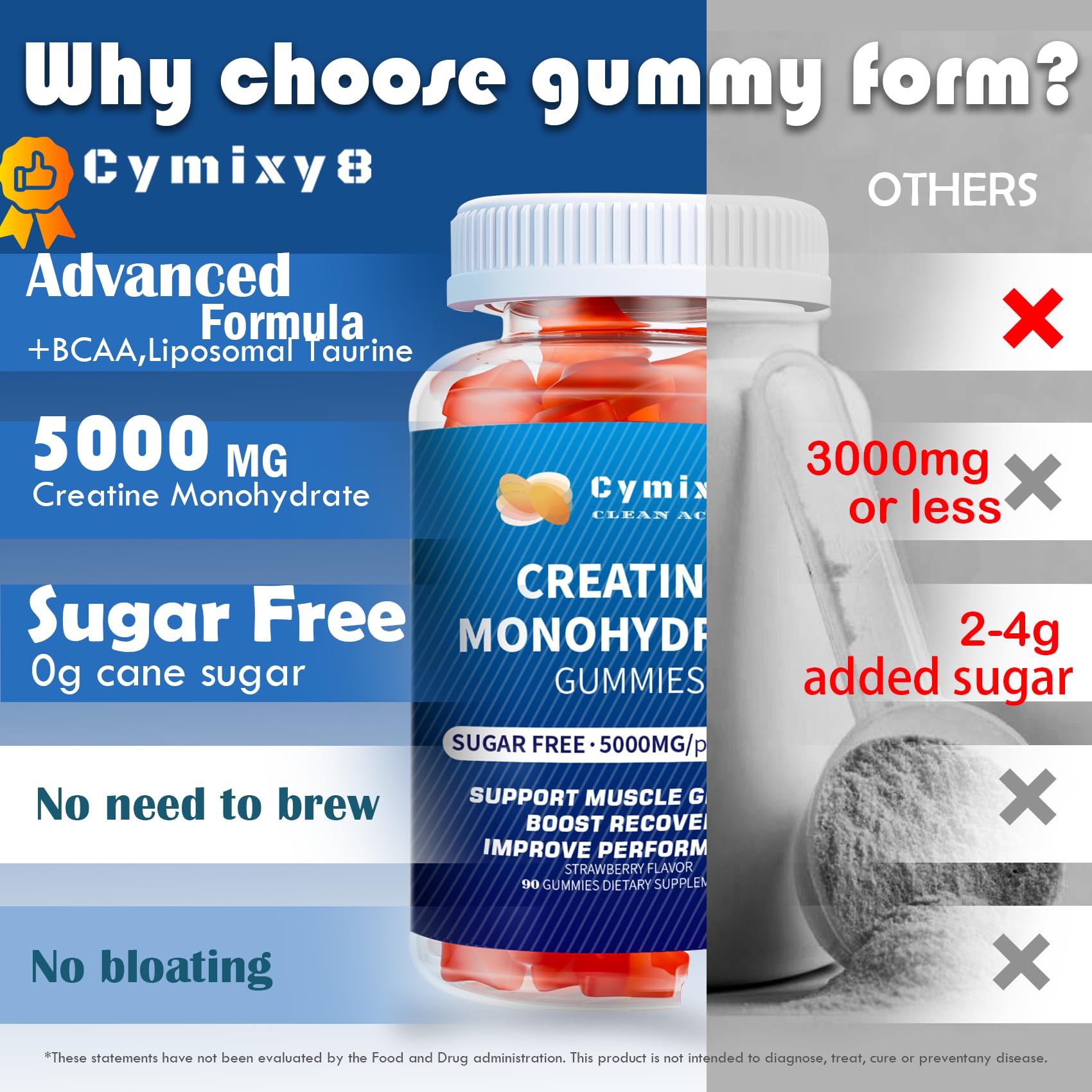 Cymixy8 Creatine Monohydrate Gummies for Men & Women 120Count