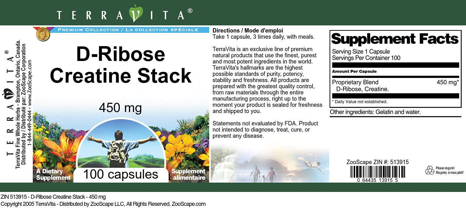 - D-Ribose Creatine Stack - 450 mg (100 capsules, ZIN: 513915)