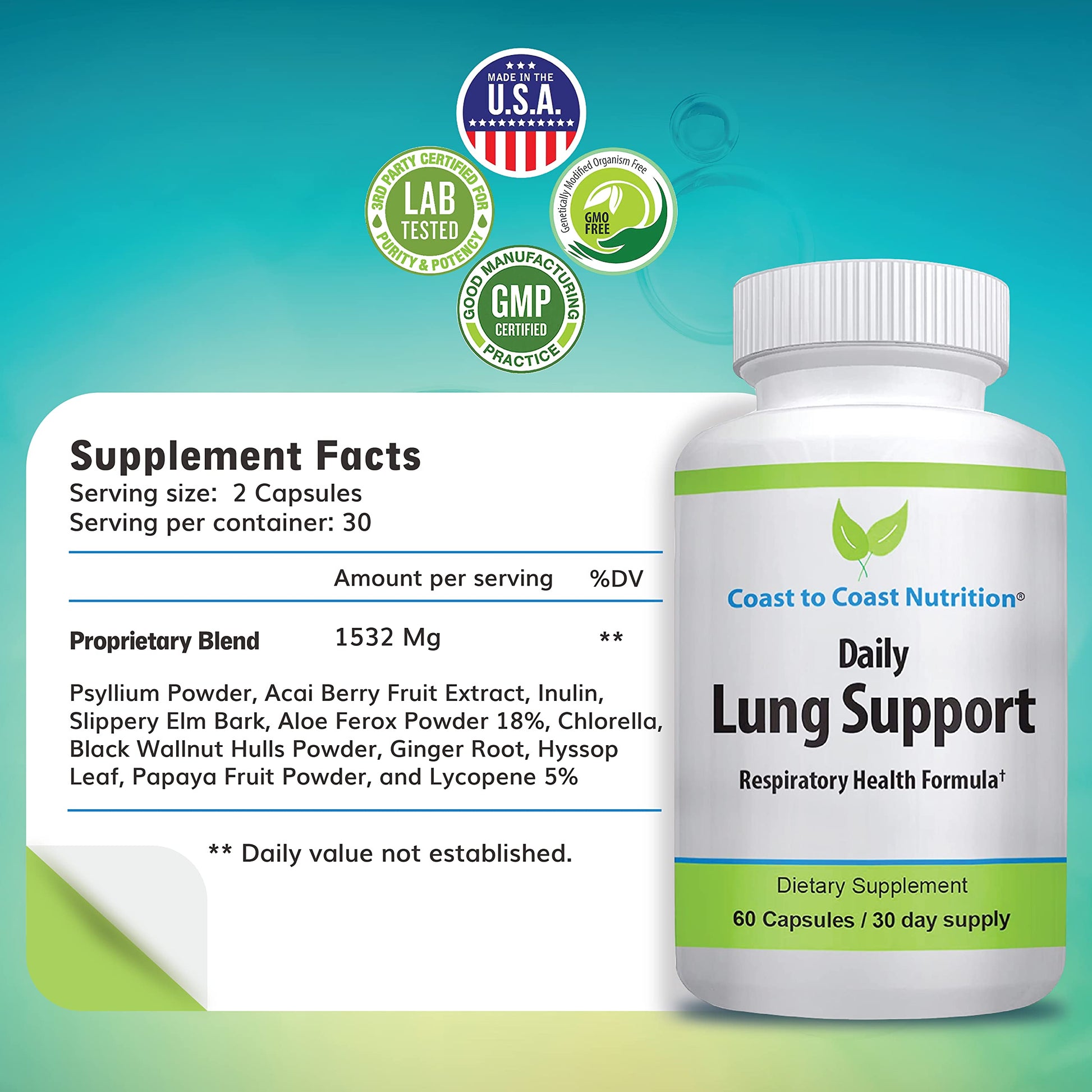 Daily Lung Cleanser & Detox Support Supplement | Refresh Your Lungs to Breath Easier | Relieve Respiratory Problems & Address Problems Like Allergies, Wheezing and Coughing | 60 Capsules
