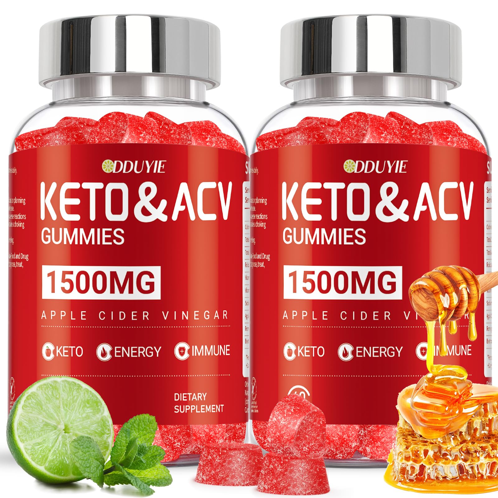 DDUYIE (2 Pack) Keto ACV Gummies - 1500mg Apple Cider Vnegar Gummies - with Pomegranate Beetroot & Vitamin B12 B6 - GMO Free - 120 Count