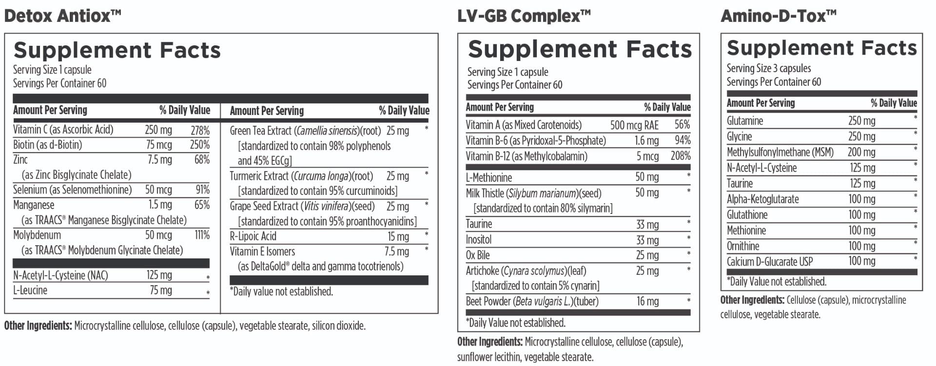 - Detox Daily - These packets contain three highly effective detoxification products, Detox Antiox, LV-GB Complex and Amino-D-Tox and can be used as a cleanse program, as additional support during a program, or for promoting regular daily cleansing. *