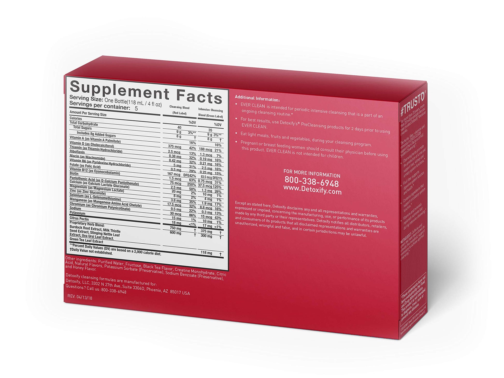 Detoxify - Ever Clean Cleansing Program - Honey Tea - 5 x 4 oz Bottles - 5-Day Solution - Green Tea, Vitamins & Minerals - Plus Sticker and Bag