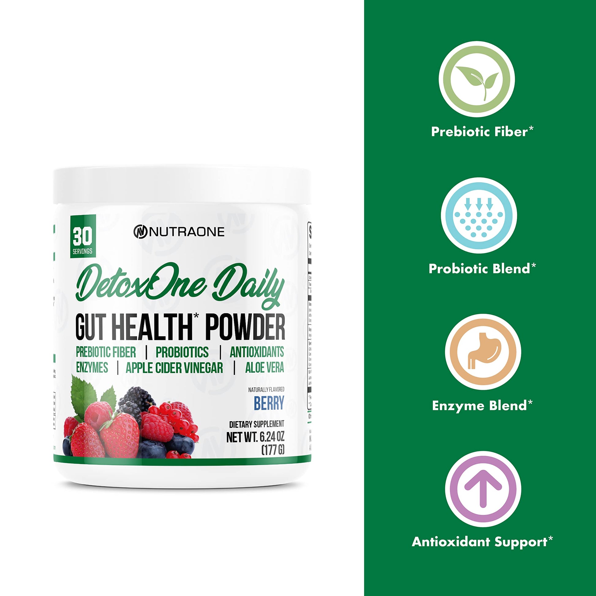 DetoxOne Daily Gut Health Powder for Weight Loss | Daily Detox Cleanse Supports Normal/Health Digestive Function*| Promotes Detoxification*, Boost Energy & Improves Nutrient Absorption*