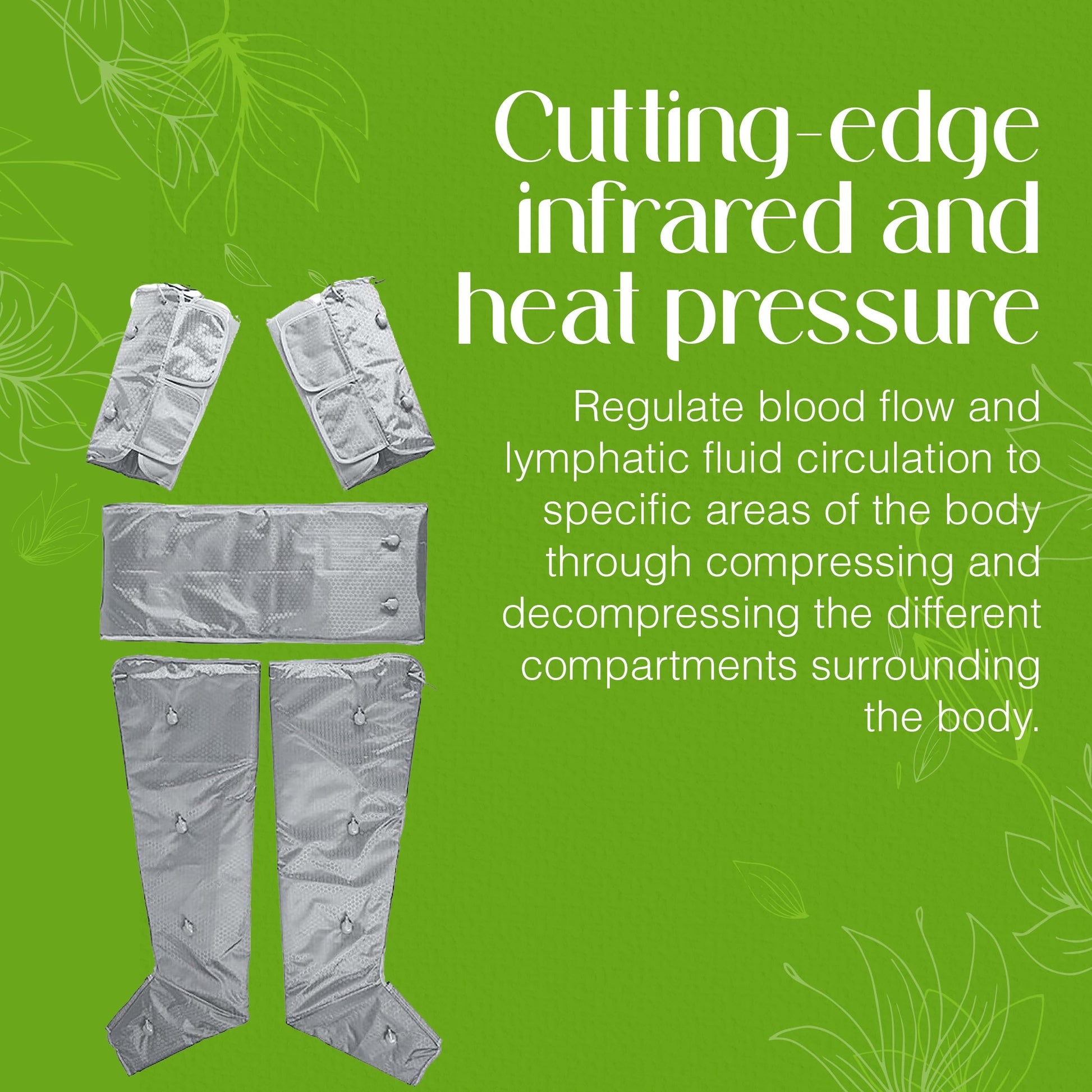 - A Lymphatic Boost Support - Remove toxins from body for an improved health. The heat therapy it delivers in the different compartments surrounding the body helps improve lymphatic drainage and boost circulation naturally!