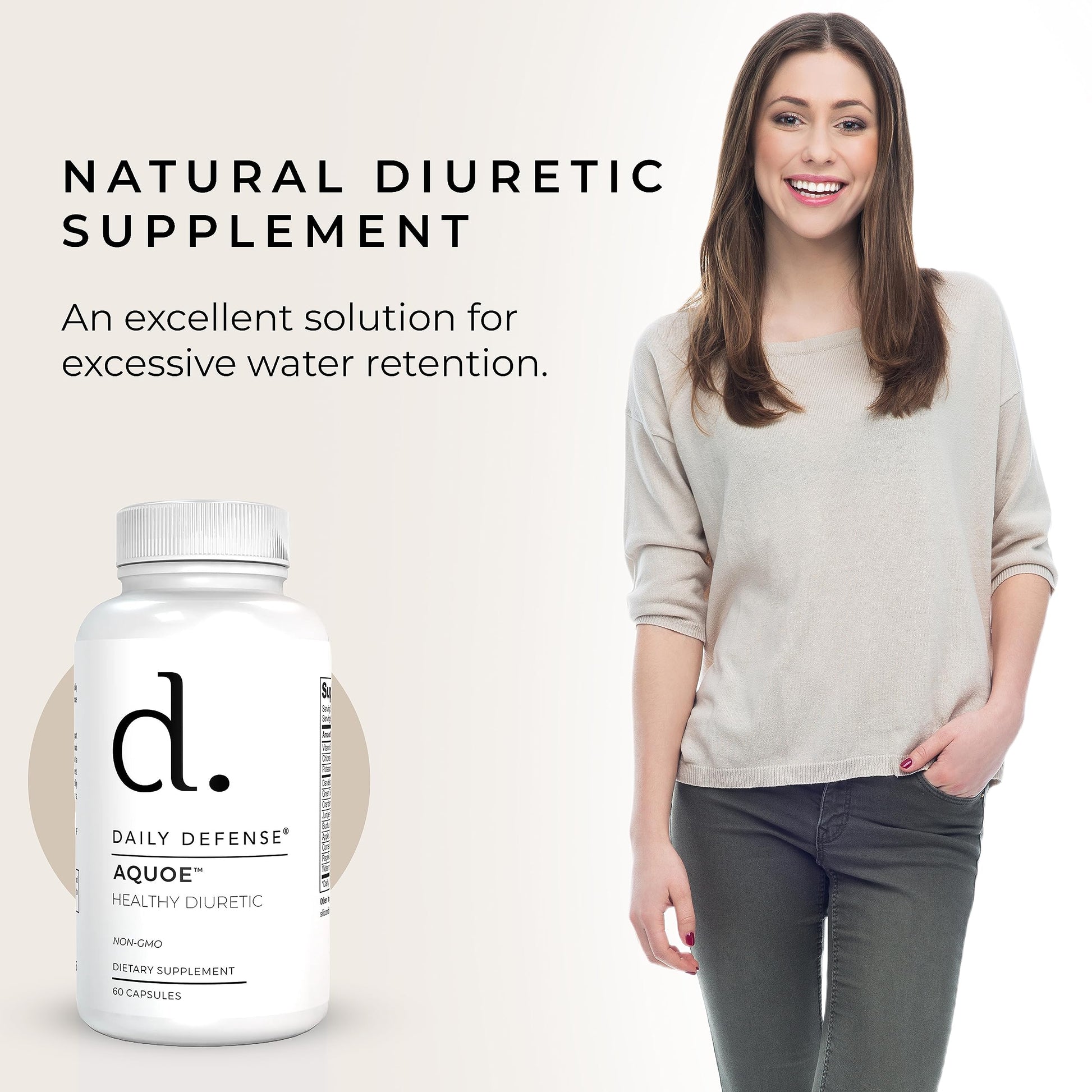 - No More Bloating and Puffy Feeling: Enjoy the freedom from bloating, puffiness, and discomfort with our Daily Defense AQUOE Water Pills water retention aid. By gently flushing excessive water away, our natural diuretics for water retention capsules promote a normal fluid balance.