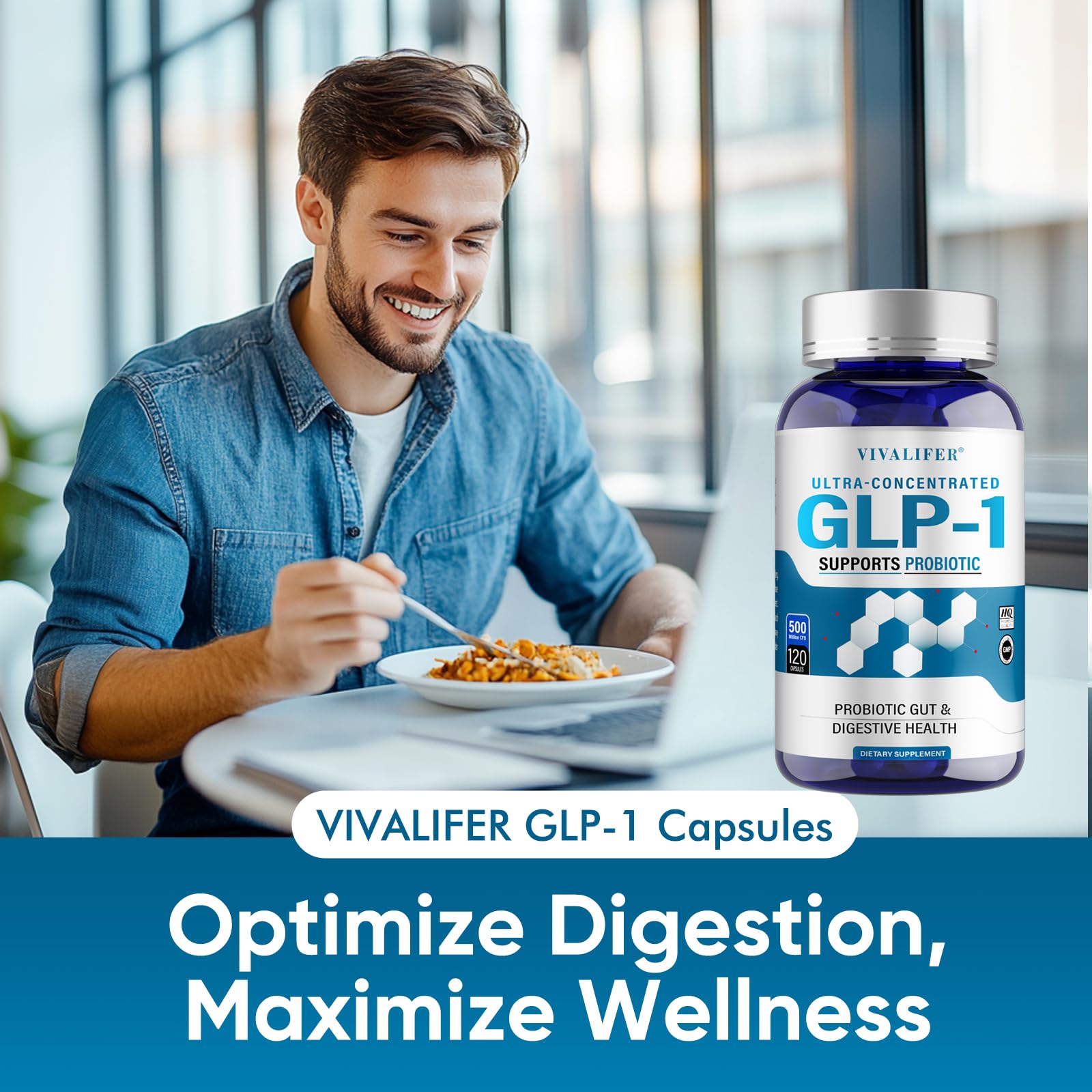 DQQI GLP-1 Supplement, 120 Capsules GLP-Activate with CFU Multi-Strain Probiotics for Gut Health, Digestive, Immune & Overall Health for Men & Women