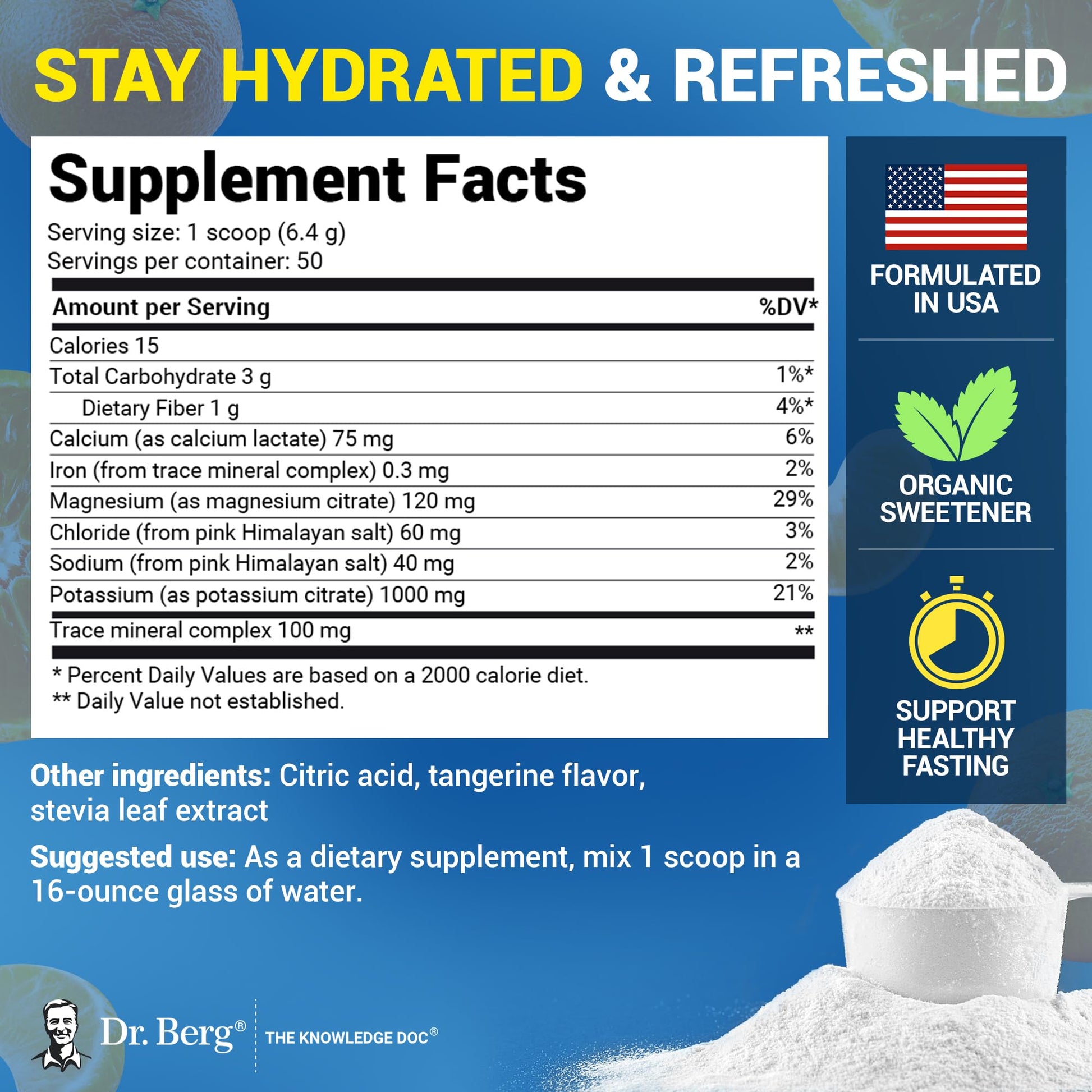 Dr. Berg Zero Sugar Hydration Keto Electrolyte Powder - Enhanced w/ 1000 mg of Potassium & Real Pink Himalayan Salt (NOT Table Salt) - Tangerine Flavor Hydration Drink Mix Supplement - 50 Servings