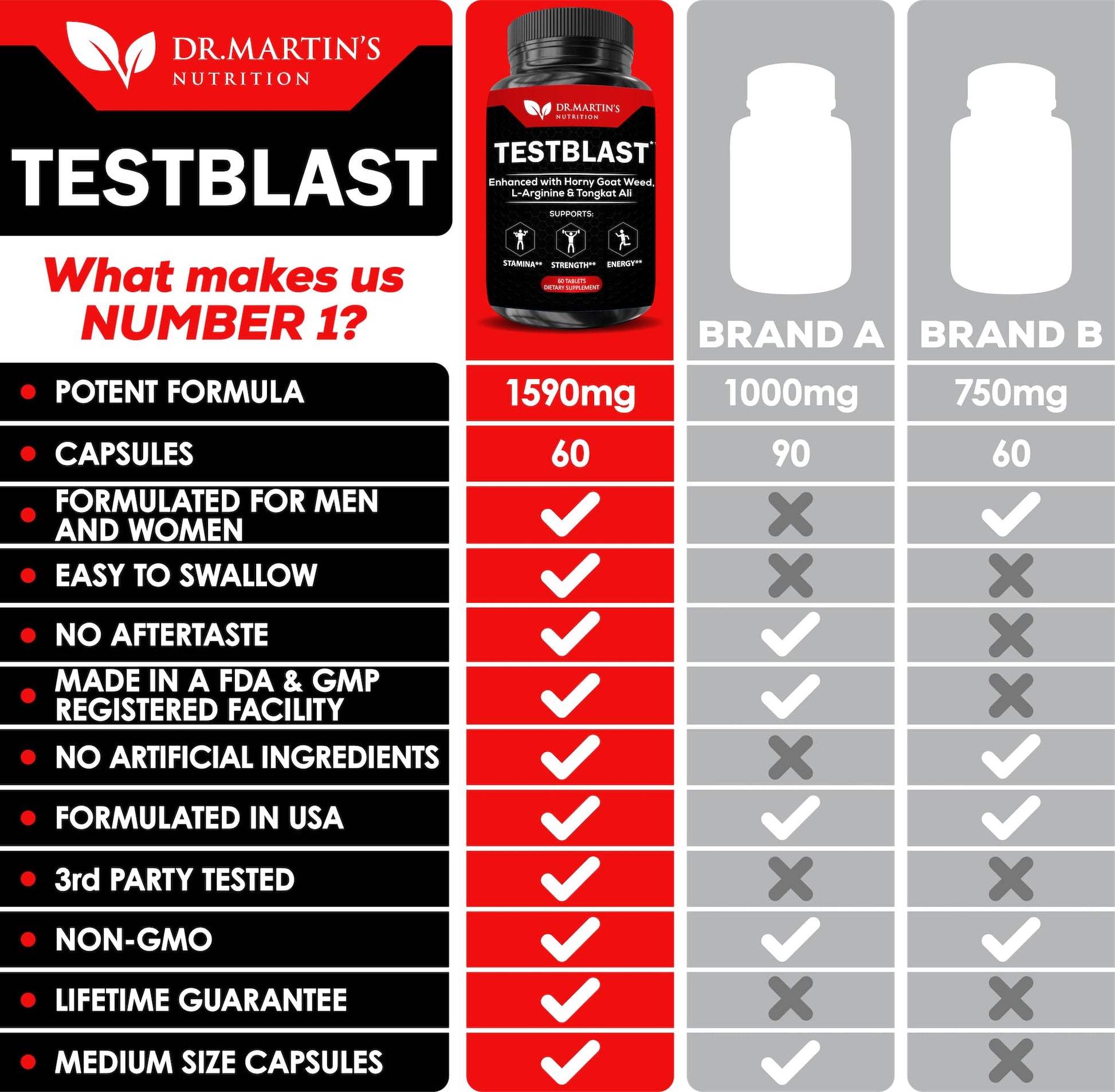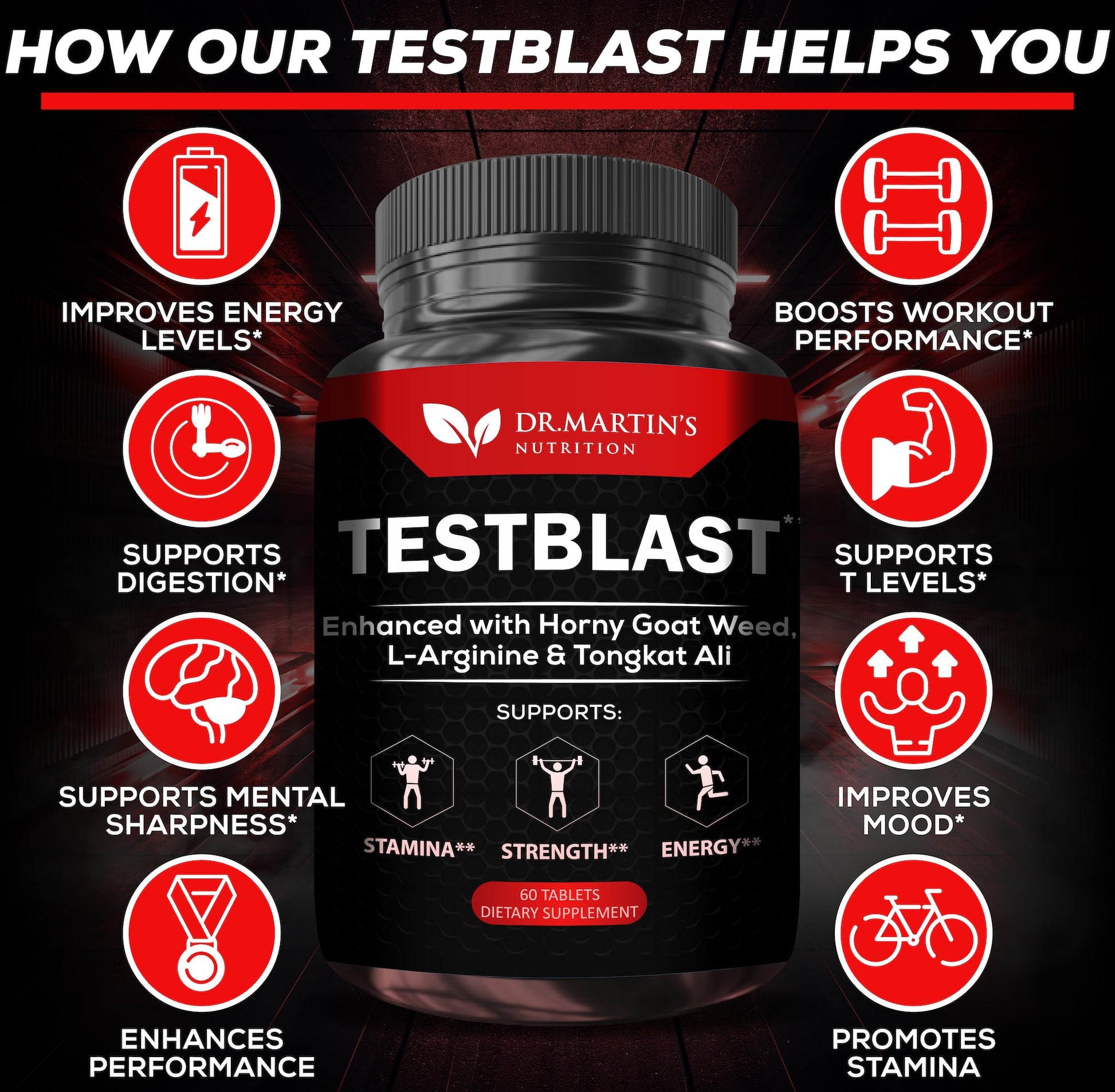 DR. MARTIN'S NUTRITION Extra Strength Testosterone Booster - Naturally Boost Your Stamina, Endurance, Strength & Energy for Men & Women - Burn Fat & Build Lean Muscle Mass Today
