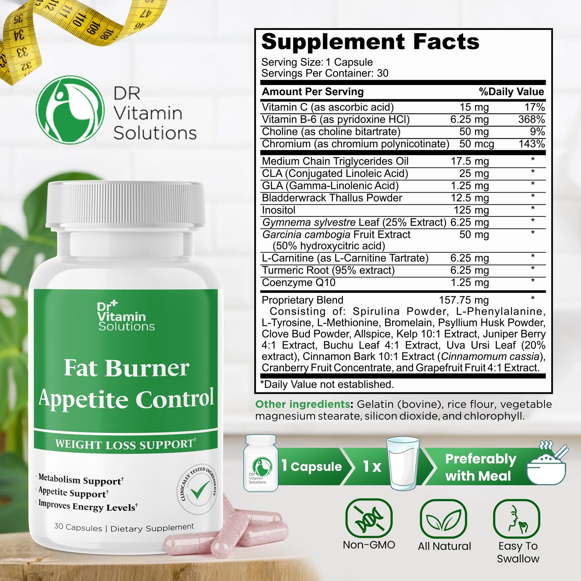 Dr. Vitamin Fat Burner & Appetite Control Weight Loss Supplements for Women & Men - Metabolism Booster w/ L-Carnitine, CLA, Chromium - Appetite Suppressant for Weight Loss - 30 Belly Fat Diet Pills