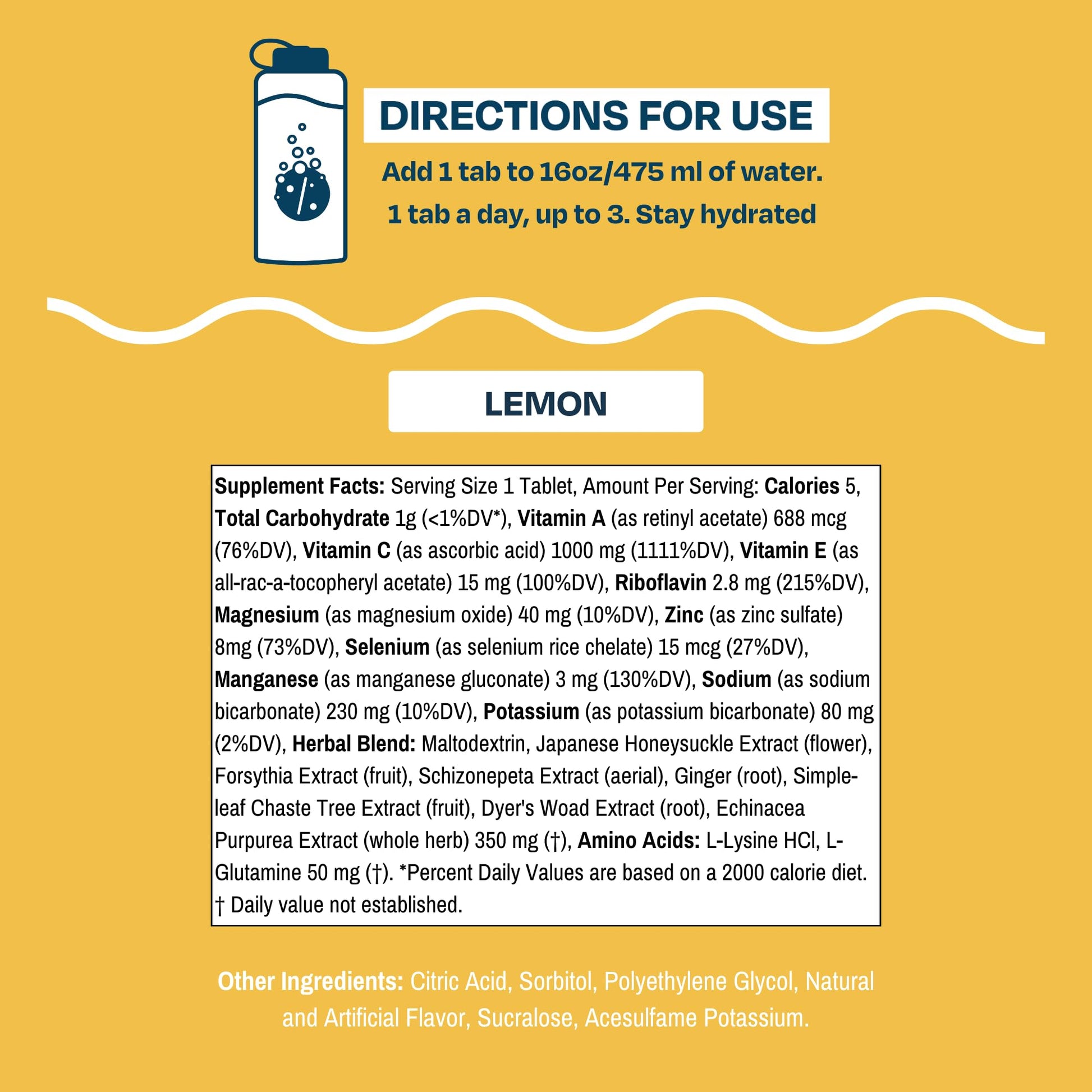 - Includes (2) 10-tablet tubes of Lemon Daily Immune Support. Sugar-Free, Gluten-Free, Vegan, Dairy-Free.