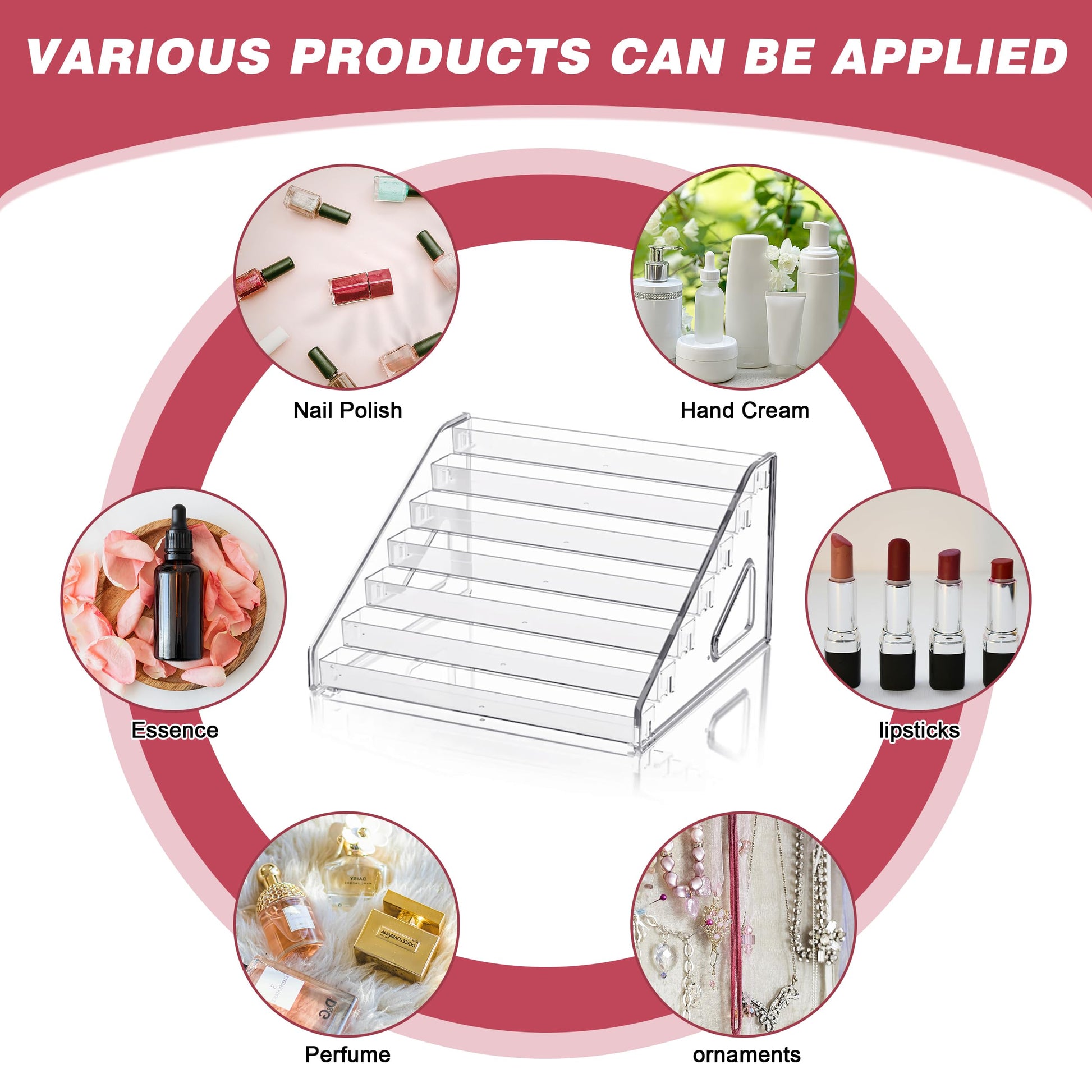 DTXIAQIAO 7-Tier Clear Acrylic Nail Polish Organizer, Holds 56-112 Bottles, Multi-Purpose Display for Nail Polish, Sunglasses, Essential Oils and Cosmetics