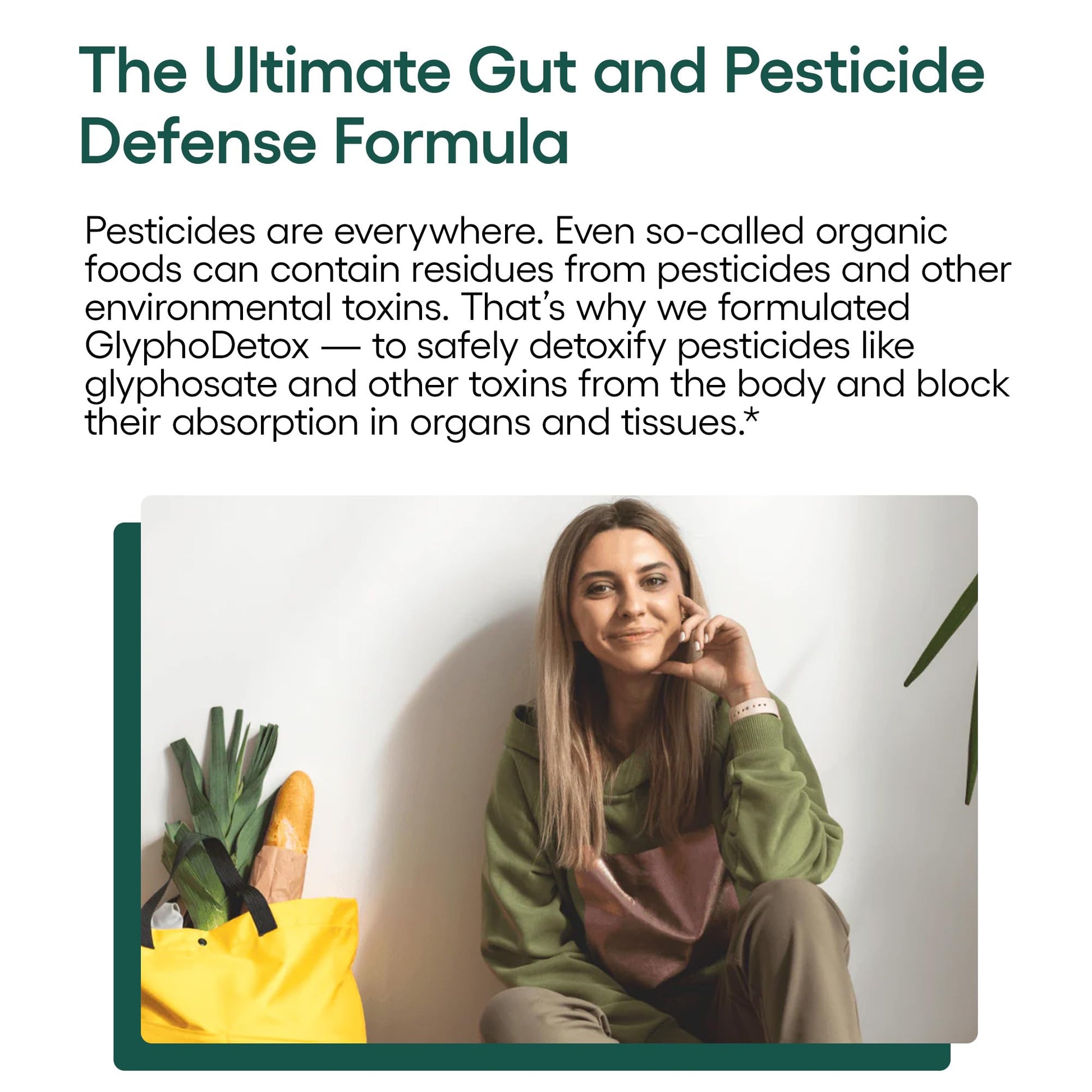 - Formulated to Support Gut Health: Pesticides and herbicides such as glyphosate impact gut health by targeting healthy bacteria and GI lining integrity; targeted ingredients in GlyphoDetox help maintain a healthy microbiome and improve digestive health*
