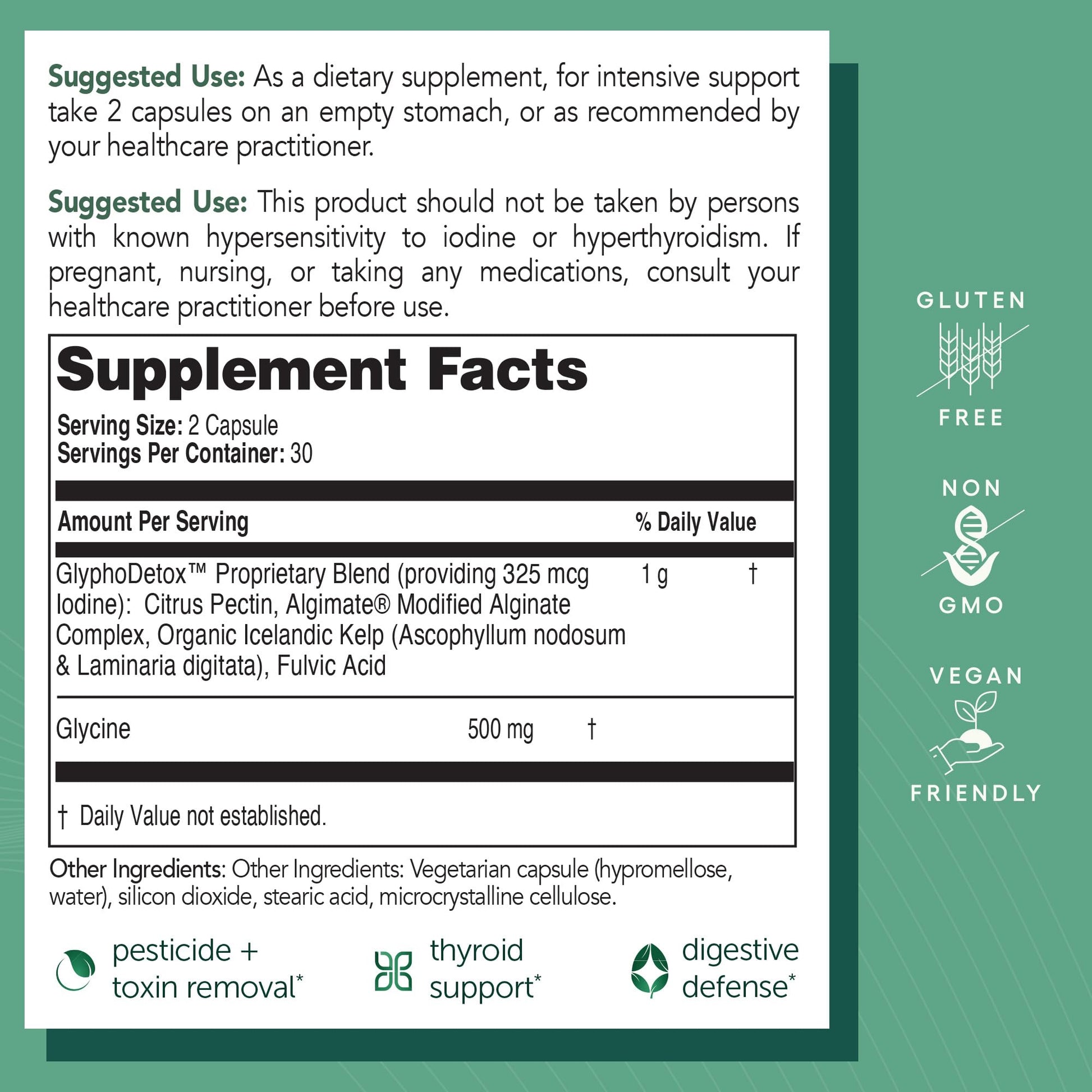 - Safely Remove Pesticides & Agricultural Toxins from the Body: Many foods contain residues of pesticides and other environmental and agricultural toxins; powerful natural detox binders in GlyphoDetox, including organic Icelandic kelp, citrus pectin, algimate modified alginate complex, and glycine, help safely eliminate these pesticides including glyphosate, and block their storage at receptor sites throughout the body*