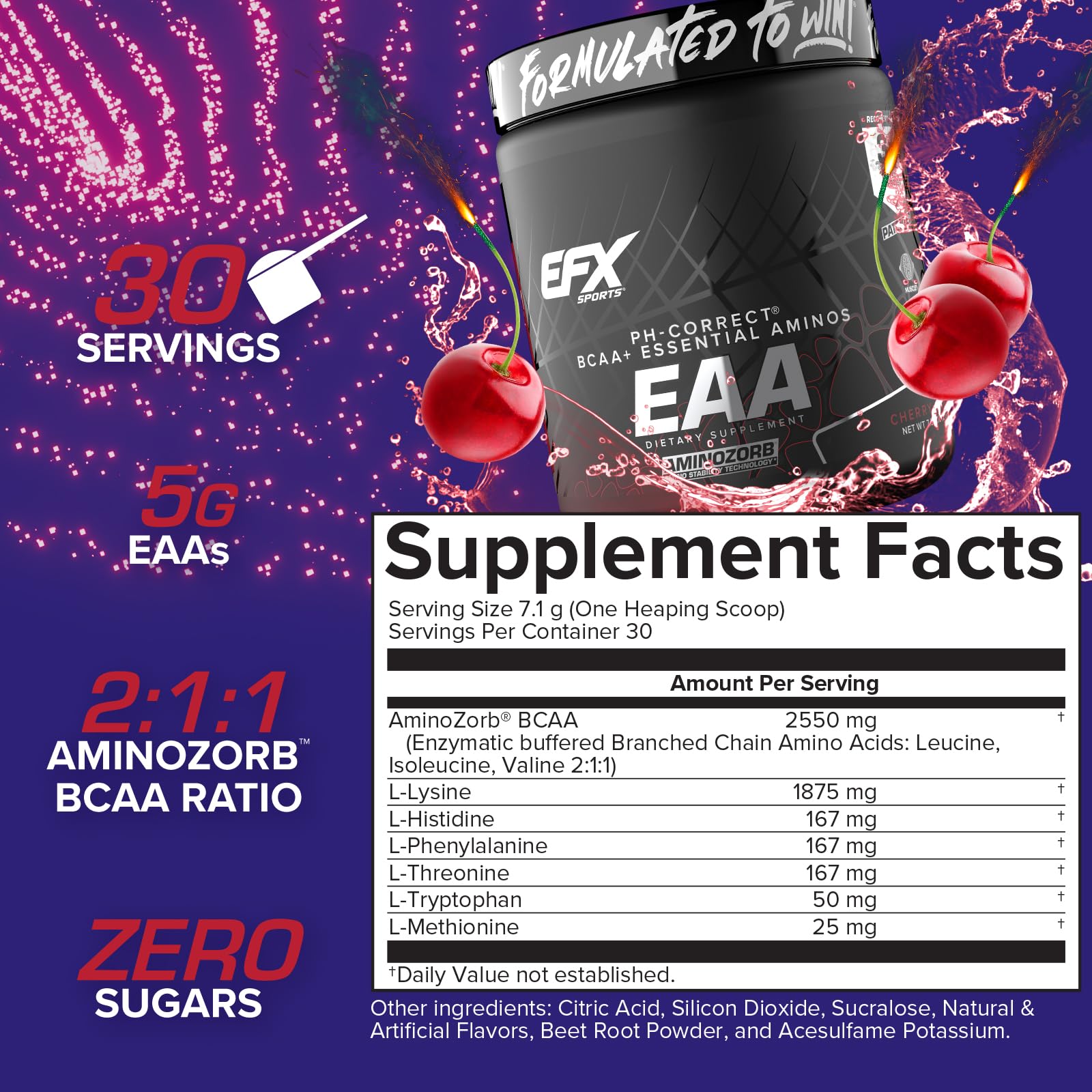 EFX Sports Training Ground EAA | Essential Amino Acids Supplement | Energy & Protein Synthesis | Pre, Intra, or Post Workout | 40 Servings (Cherry Bomb)