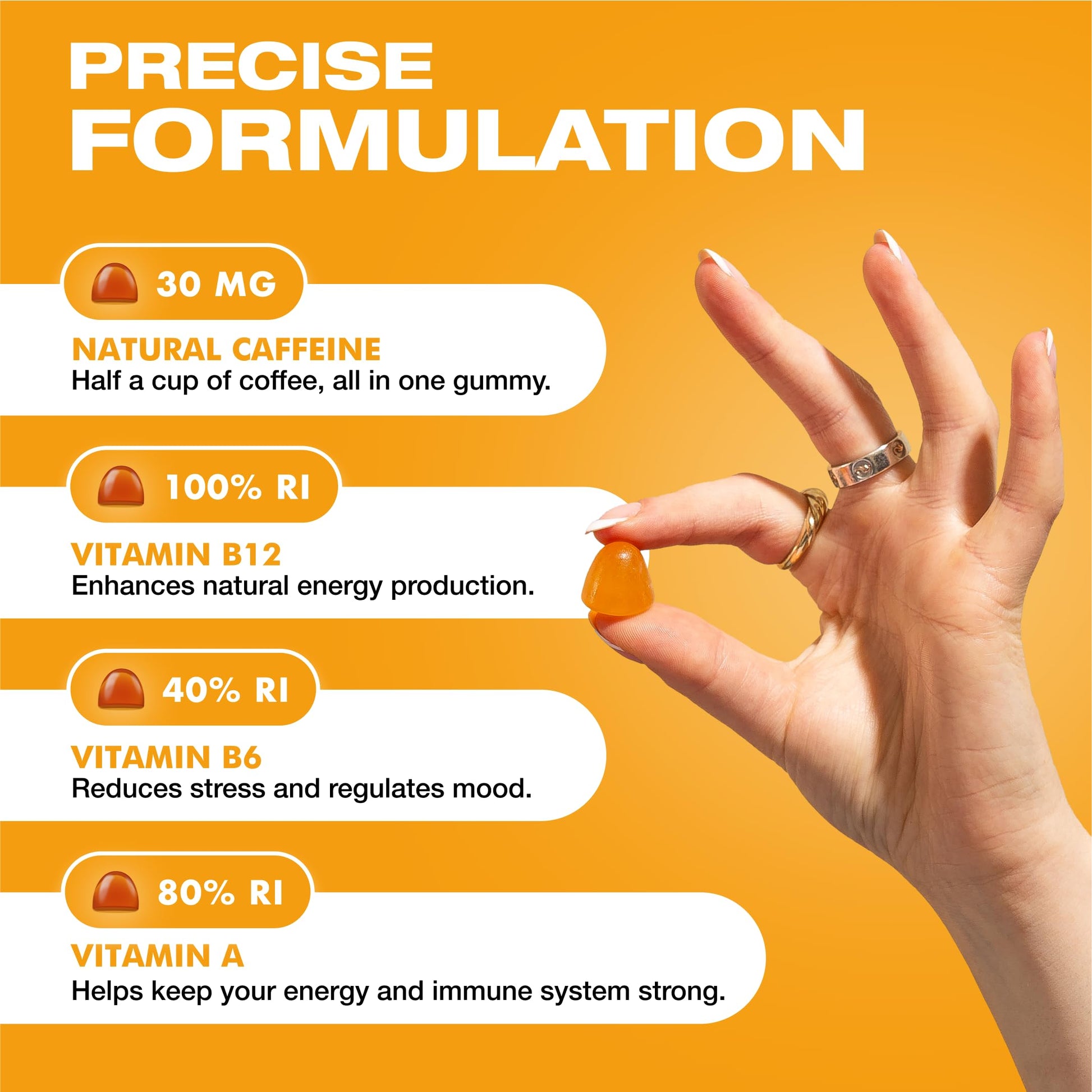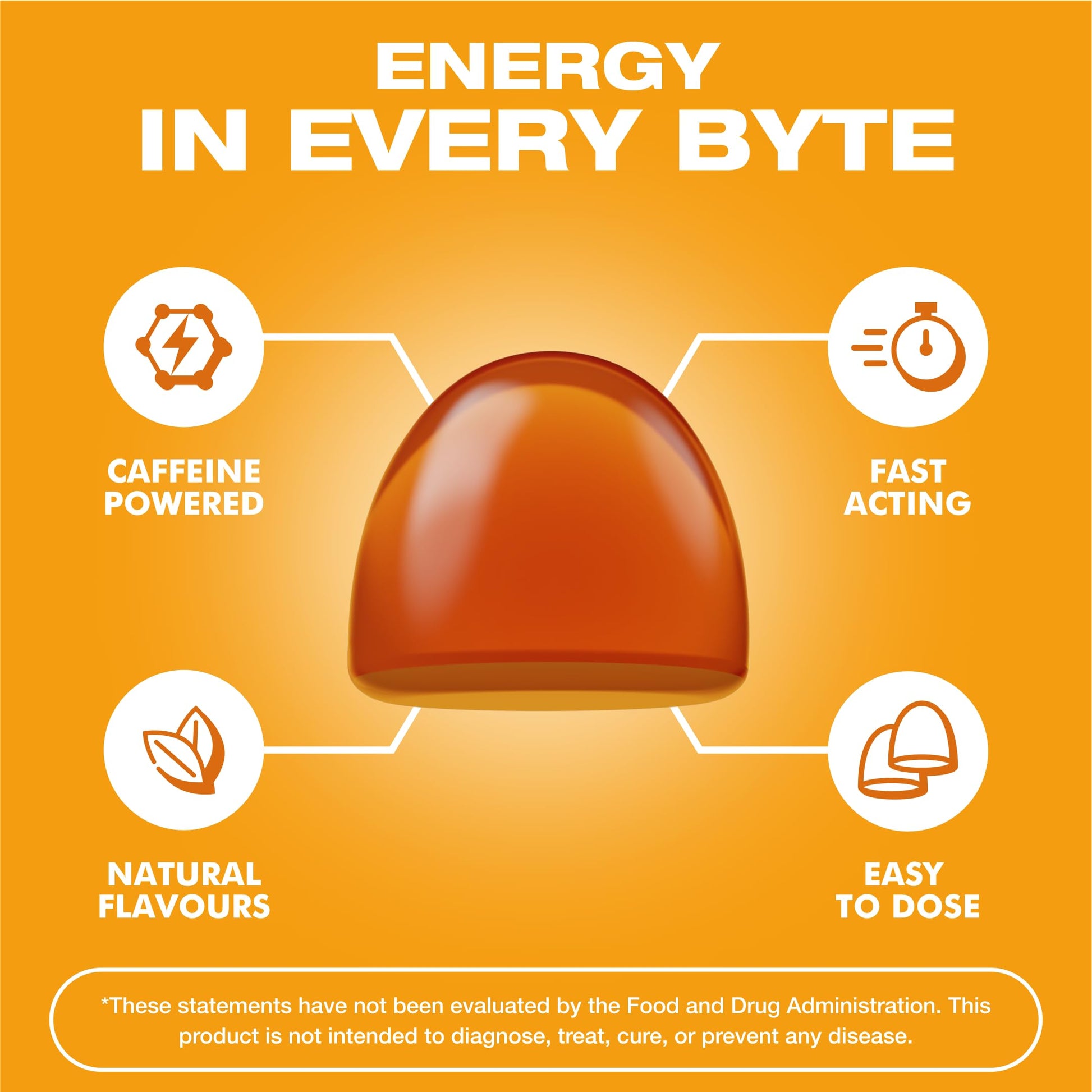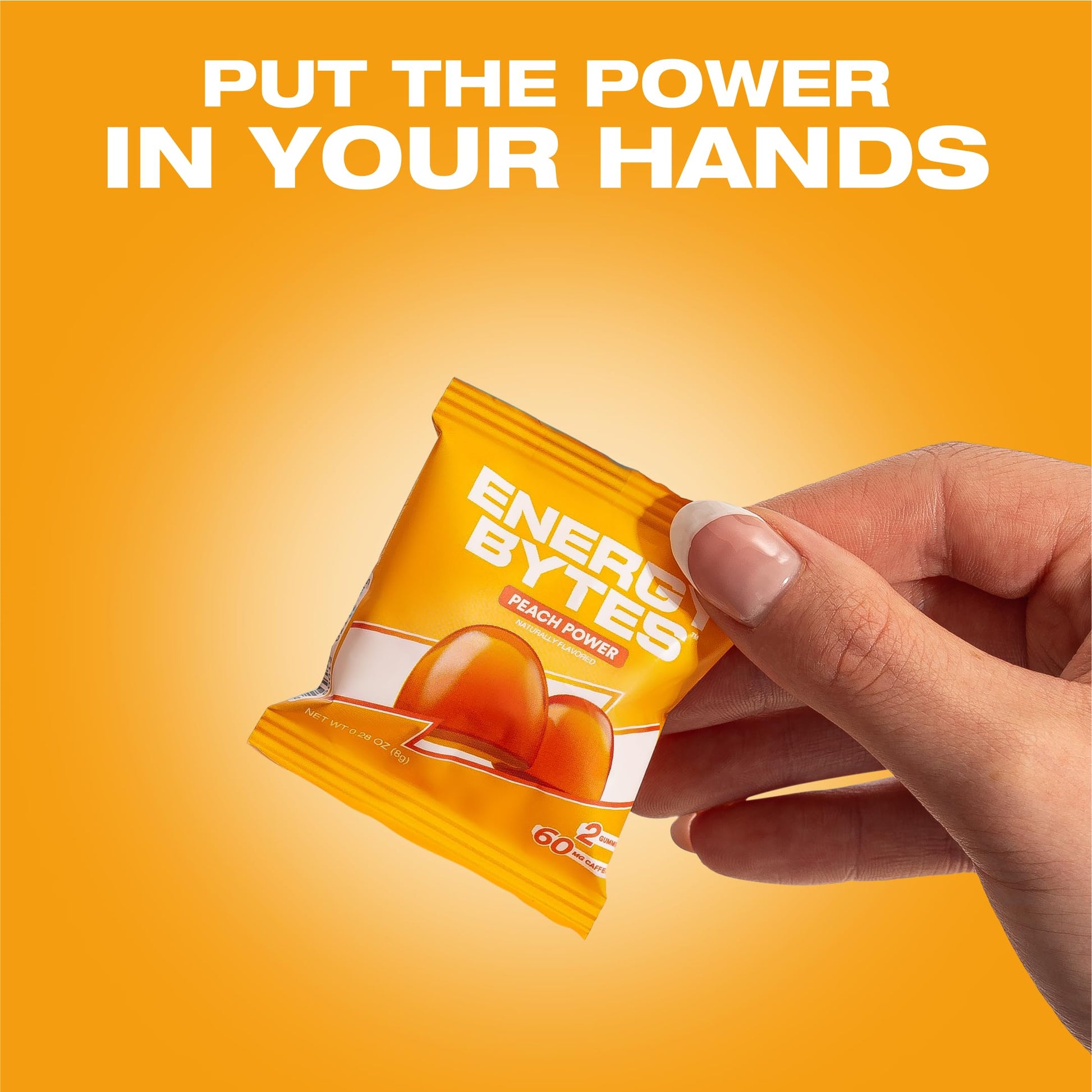 Energy Bytes Caffeine Gummies | Instant Energy Chews for Running, Cycling and Sports Performance | Vegan, Low Sugar | Peach Power (12-Pack)
