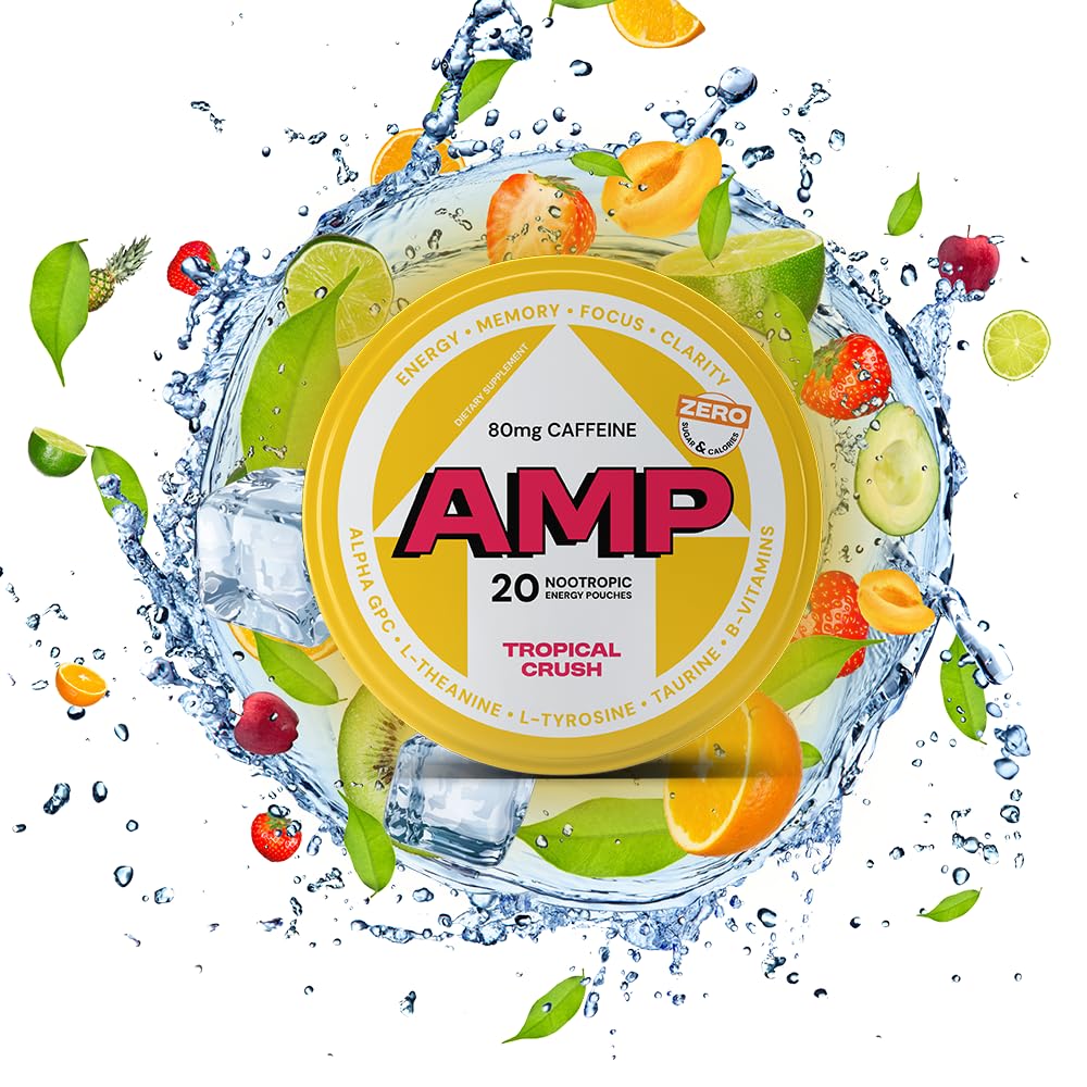 Energy Pouches Tropical Crush 20 Pouches per Can 5 Packs - 80mg Caffeine & Nootropic Blend - Zero Sugar, Nicotine-Free - Enhances Focus, Memory & Performance