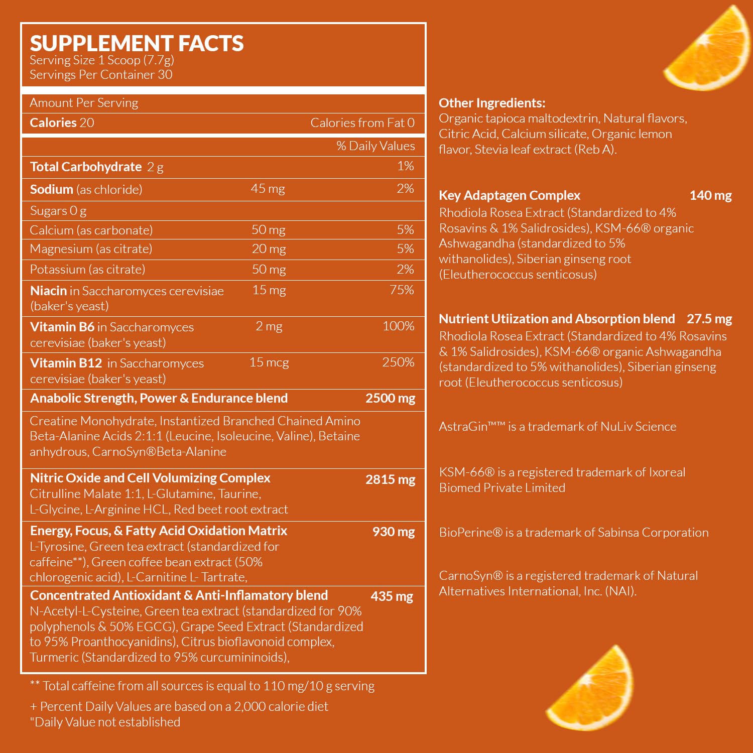 - 𝐈𝐧𝐝𝐮𝐥𝐠𝐞 𝐢𝐧 𝐓𝐡𝐞 𝐃𝐞𝐥𝐢𝐜𝐢𝐨𝐮𝐬 𝐓𝐚𝐬𝐭𝐞: Indulge your taste buds while fueling up for a killer workout with our Pre-workout powder! With a mouth-watering orange flavor perfectly balanced with just the right amount of green coffee beans, green tea, performance boosters, and natural caffeine, this drink will fuel you for maximum performance and tantalize your taste buds like never before.