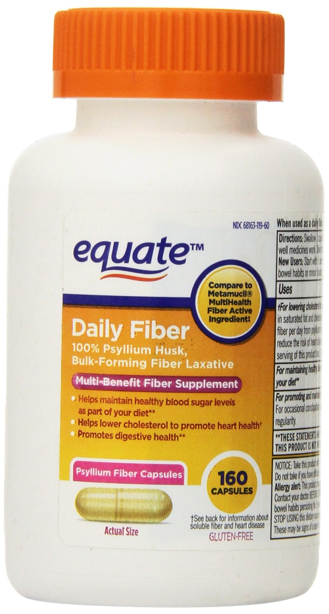 Equate Fiber Therapy, For Regularity Fiber Supplement Capsules, 160-Count Bottle