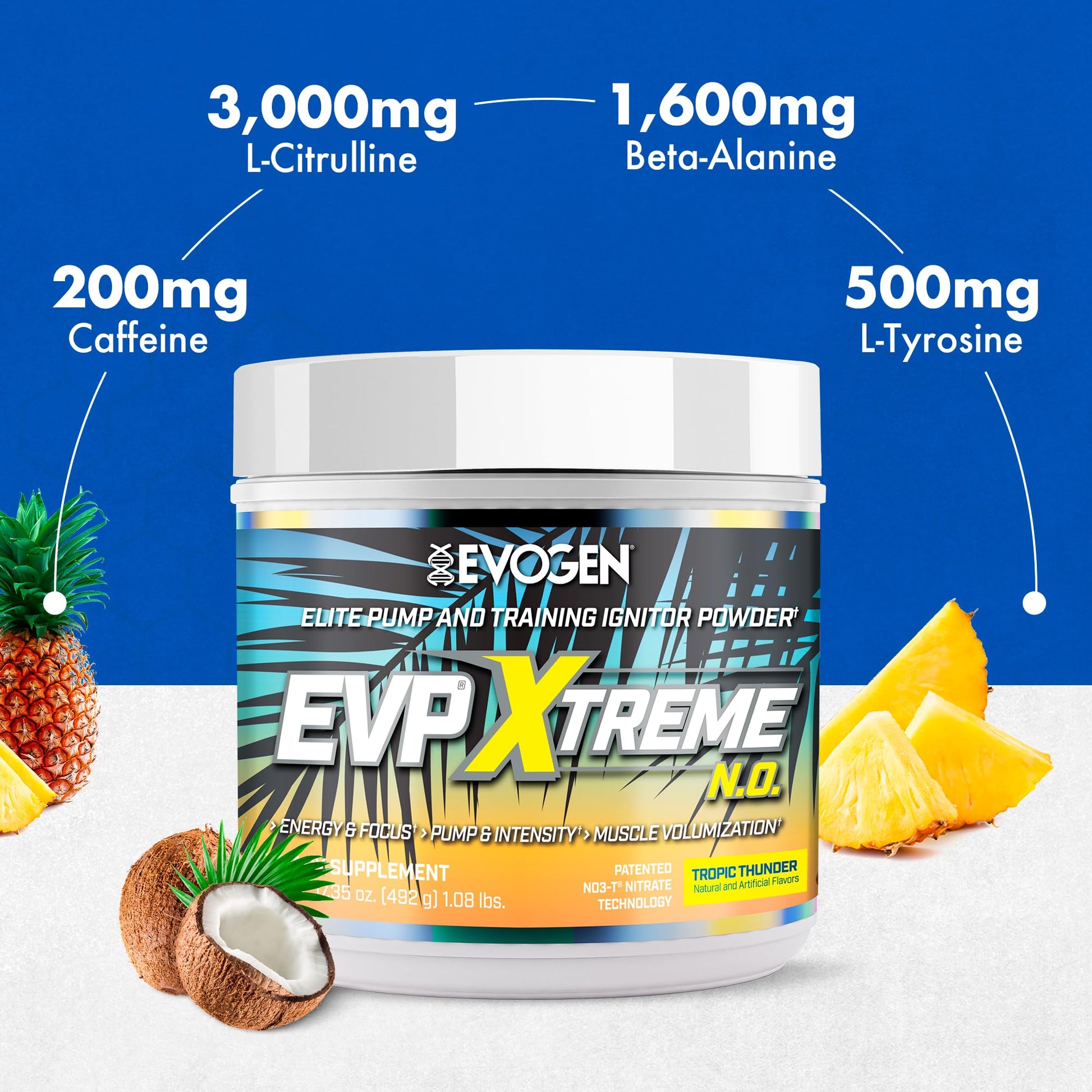 Evogen EVP Xtreme NO - Pre Workout Powder for Men & Women | Sugar Free Preworkout with Beta Alanine, Creatine, and Caffeine for Energy & Pump | Tropic Thunder | 40 Servings