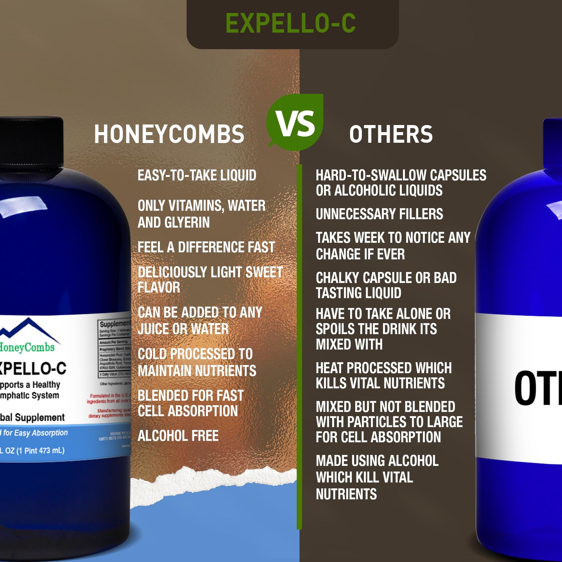 - PURE & POTENT: HoneyCombs Industries Expello-C cellular detox is manufactured in the USA with zero fillers, artificial preservatives, colors or flavors and no corn, soy, or wheat.