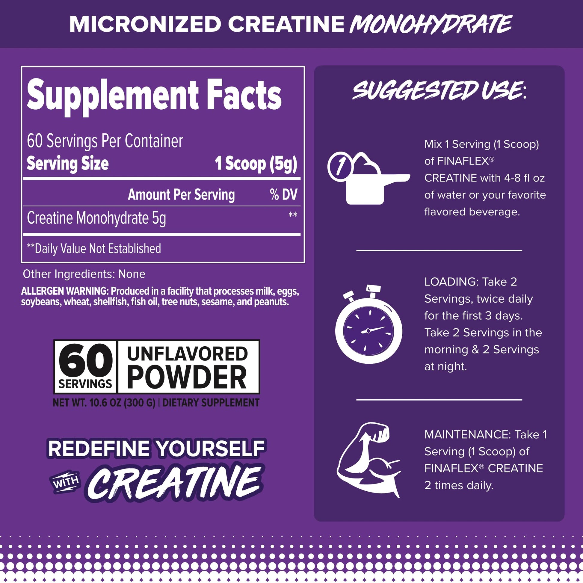 FINAFLEX Pure CREATINE, Unflavored - 10.6 oz, Pack of 2 - Promotes Muscular Strength, Size & Performance - 100% Pure, Micronized Creatine Monohydrate - 120 Total Servings