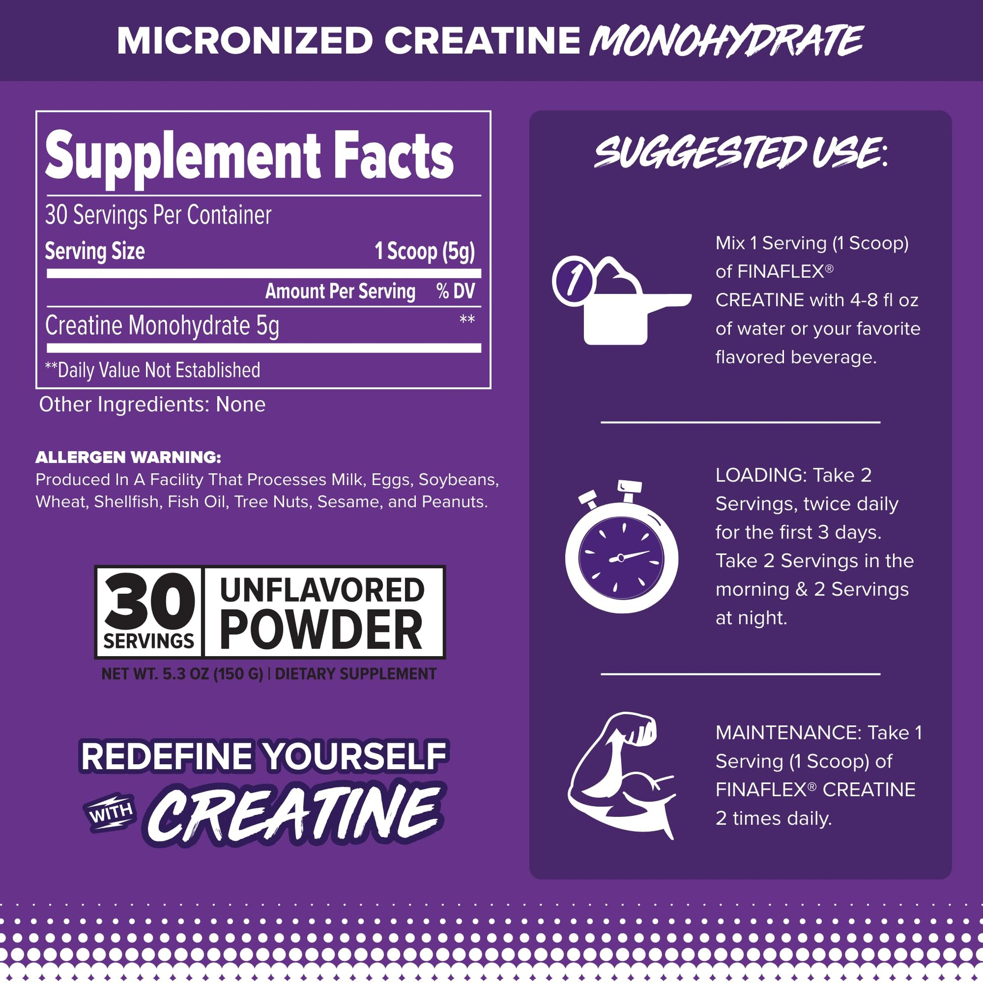 FINAFLEX Pure CREATINE, Unflavored - 5.3 oz - Promotes Muscular Strength, Size & Performance - 100% Pure, Micronized Creatine Monohydrate - 30 Servings