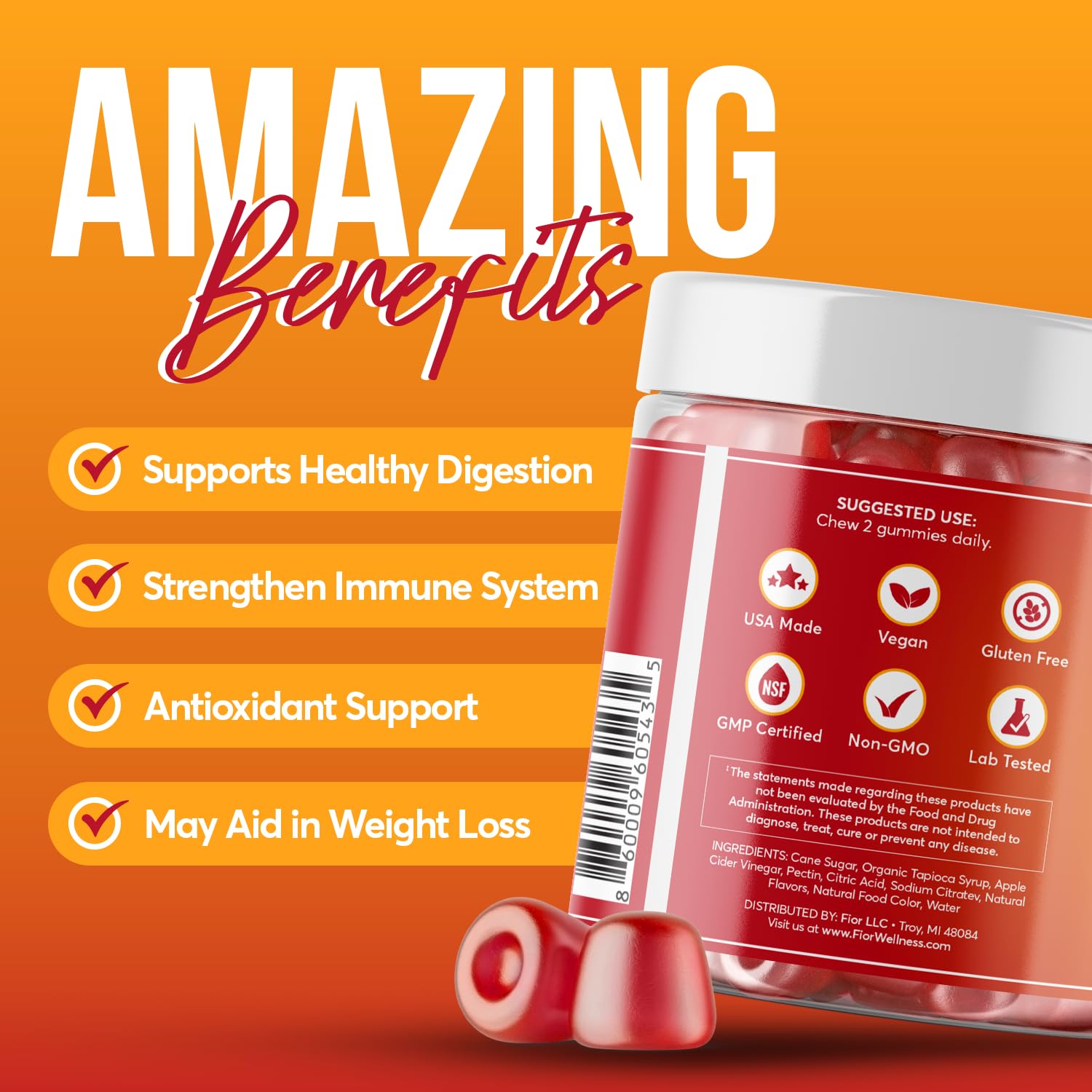 - Great For You - Apple Cider Vinegar Gummies are great for supporting digestion, immune health, and body management.
