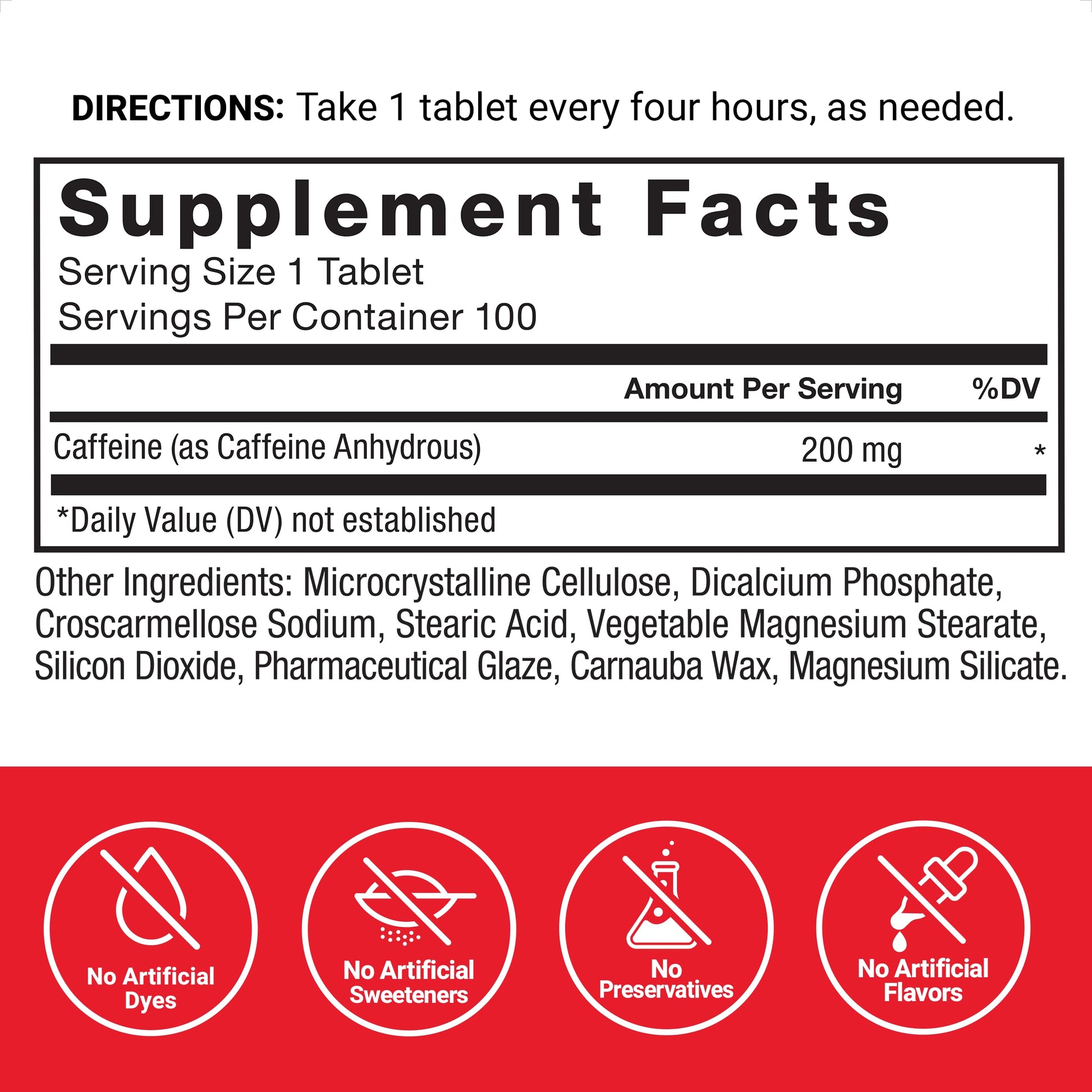 Force Factor Caffeine Pills 200mg, Caffeine Tablets to Boost Energy, Focus, Strength, and Performance, Premium Quality Caffeine Pills and Energy Supplement, 100 Tablets