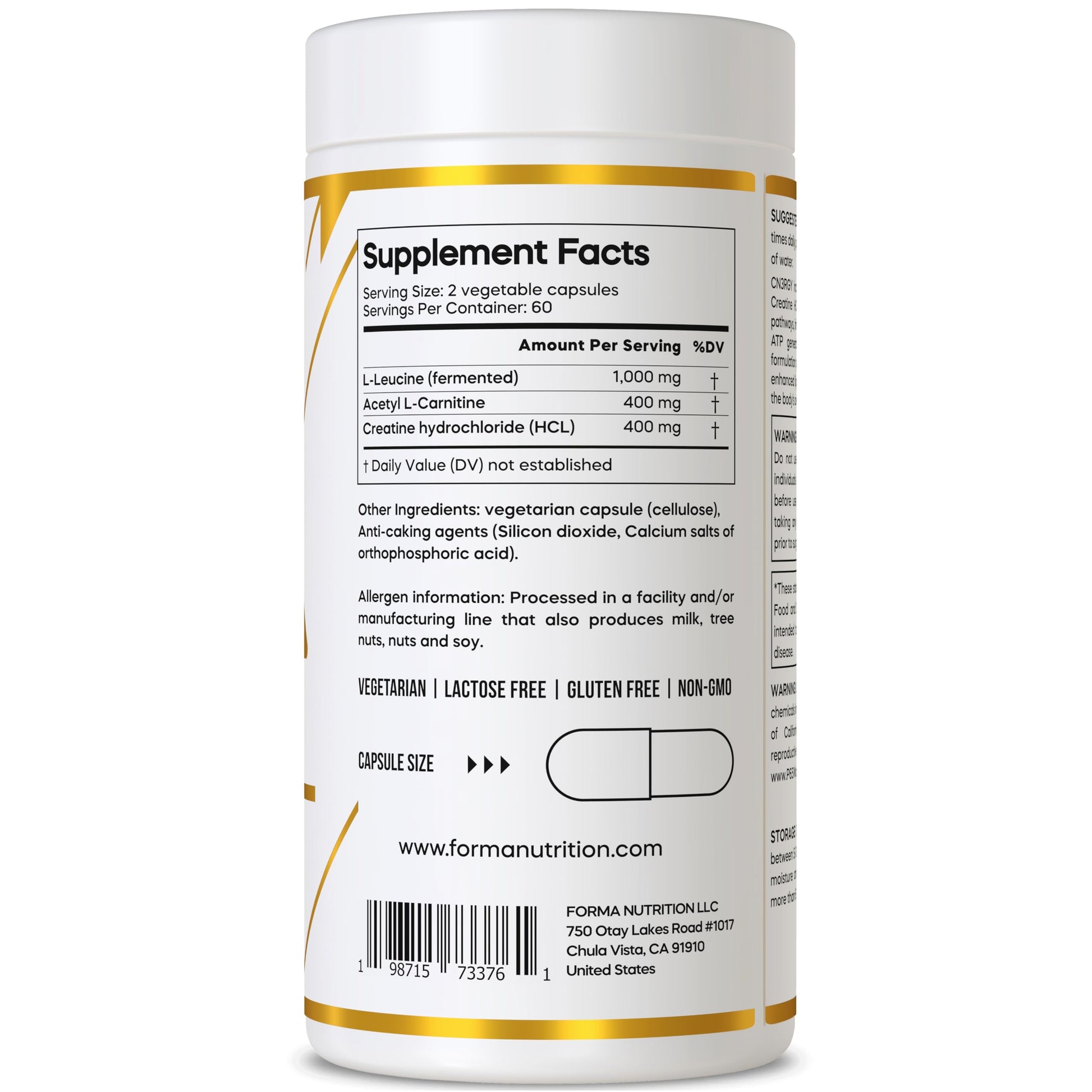 Forma Nutrition Advanced CN3RGY - 120 Capsules, 1000mg L-Leucine, 400mg L-Carnitine, 400mg Creatine HCl per Serving.