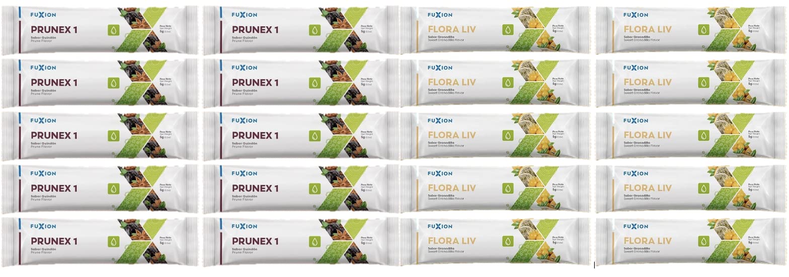 Fuxion PRUNEX1 and Flora LIV. PM/AM Colon Defense and Cleanse. 10 SACHETS of PRUNEX and 10 SACHETS of Flora LIV.