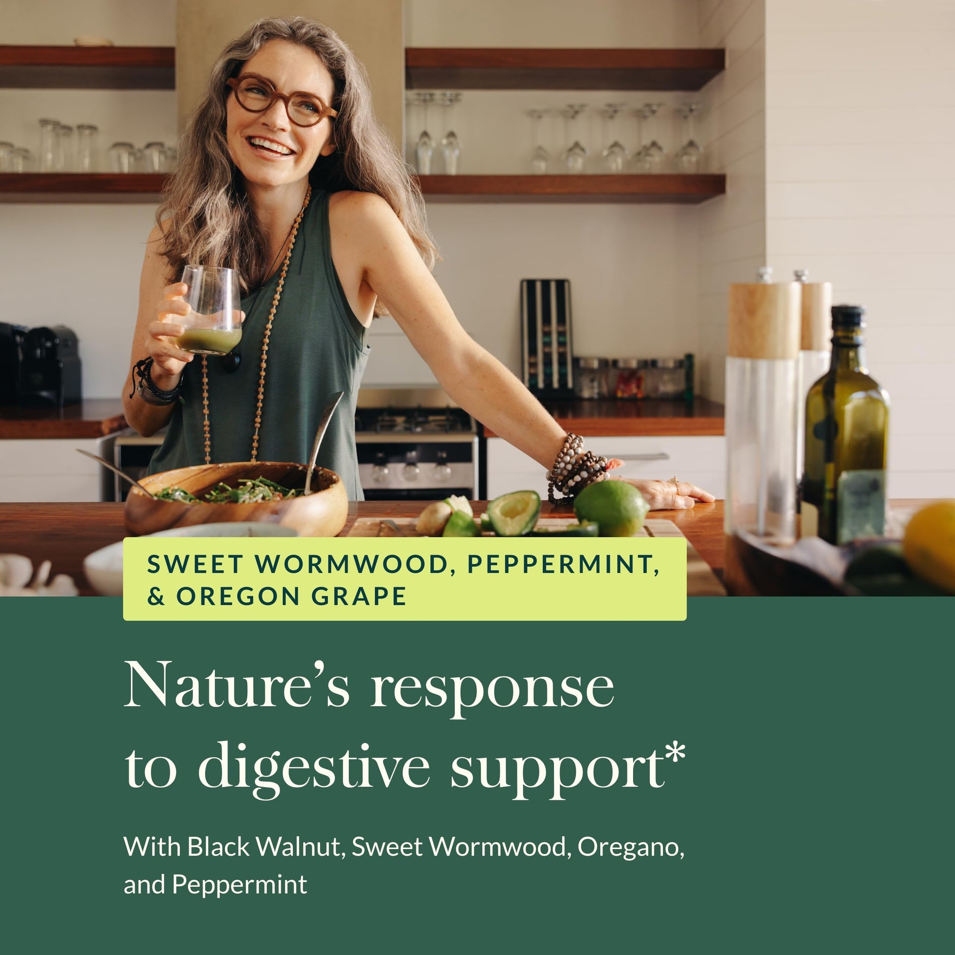 - Digestive Aid: With organic peppermint leaf essential oil, black walnut, sweet wormwood & oregano