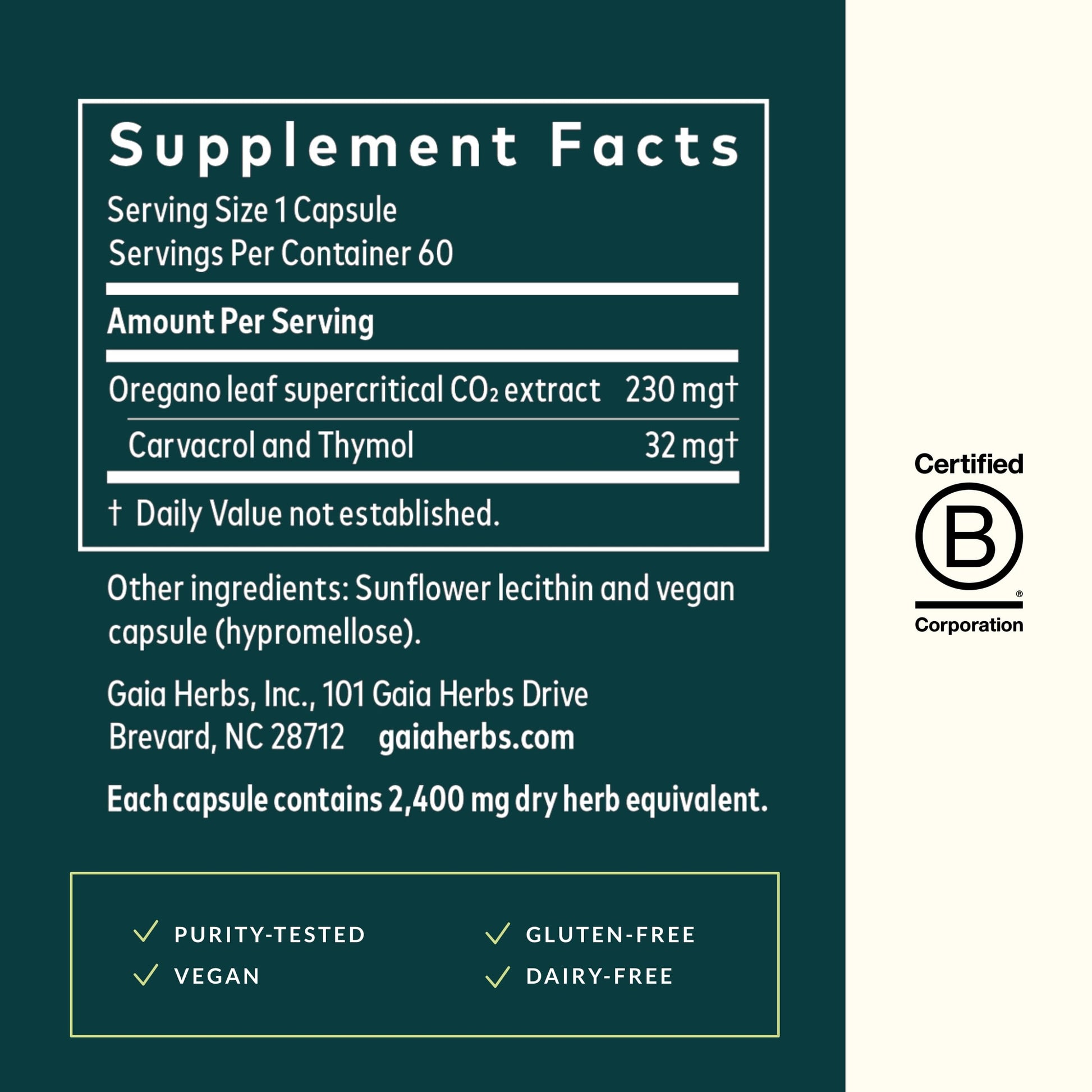 Gaia Herbs Oil of Oregano - Immune and Antioxidant Support Supplement to Help Sustain Overall Well-Being - with Oregano Oil, Carvacrol, and Thymol - 60 Vegan Liquid Phyto-Capsules (30-Day Supply)