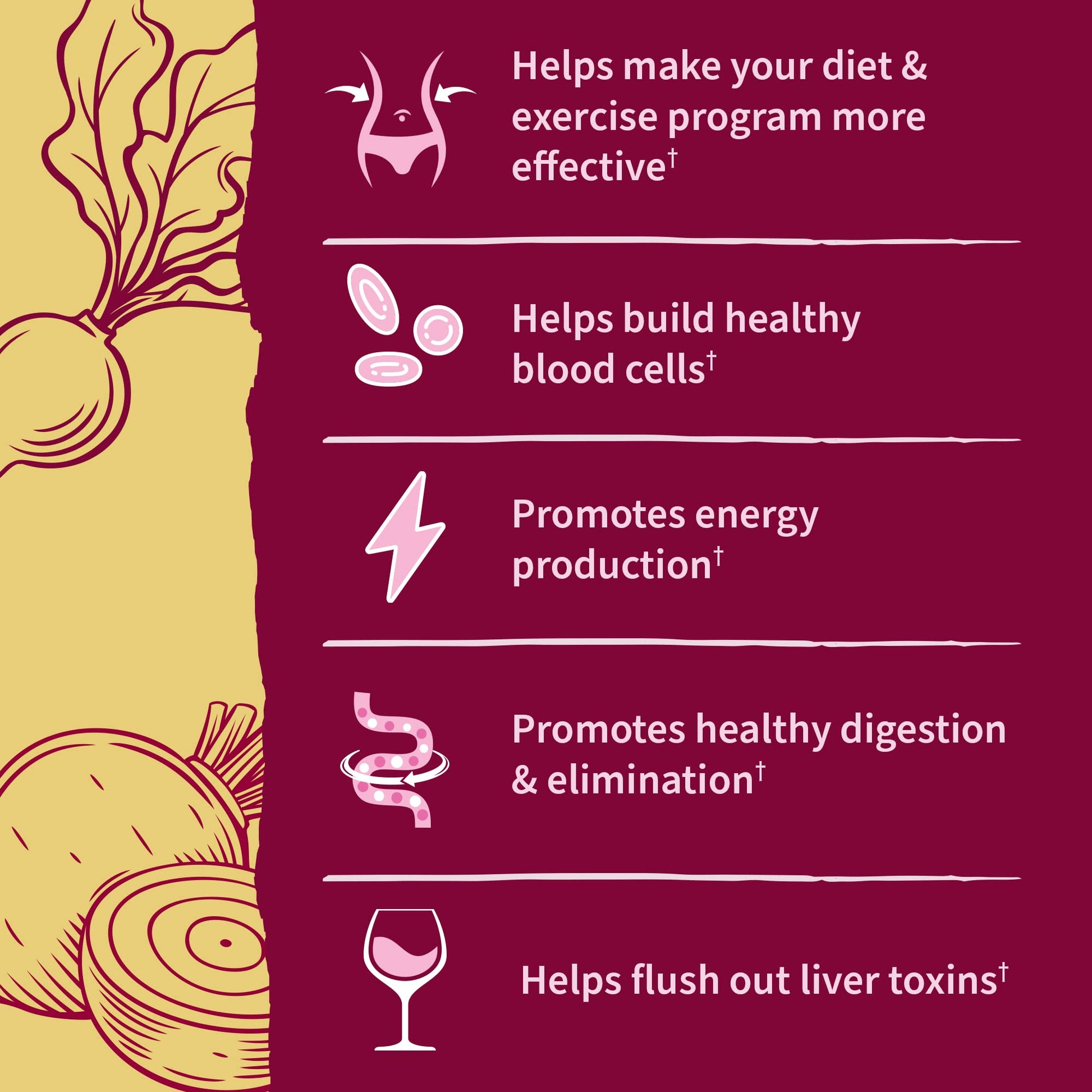 - FEEL THE ENERGY: As your blood flow starts to improve, your body begins to receive more oxygen and absorb more nutrients; BEETS Detox provides 100mcg of Folate from Organic Lemon Peel Extract and 12mcg of Vitamin B12 to help promote energy production