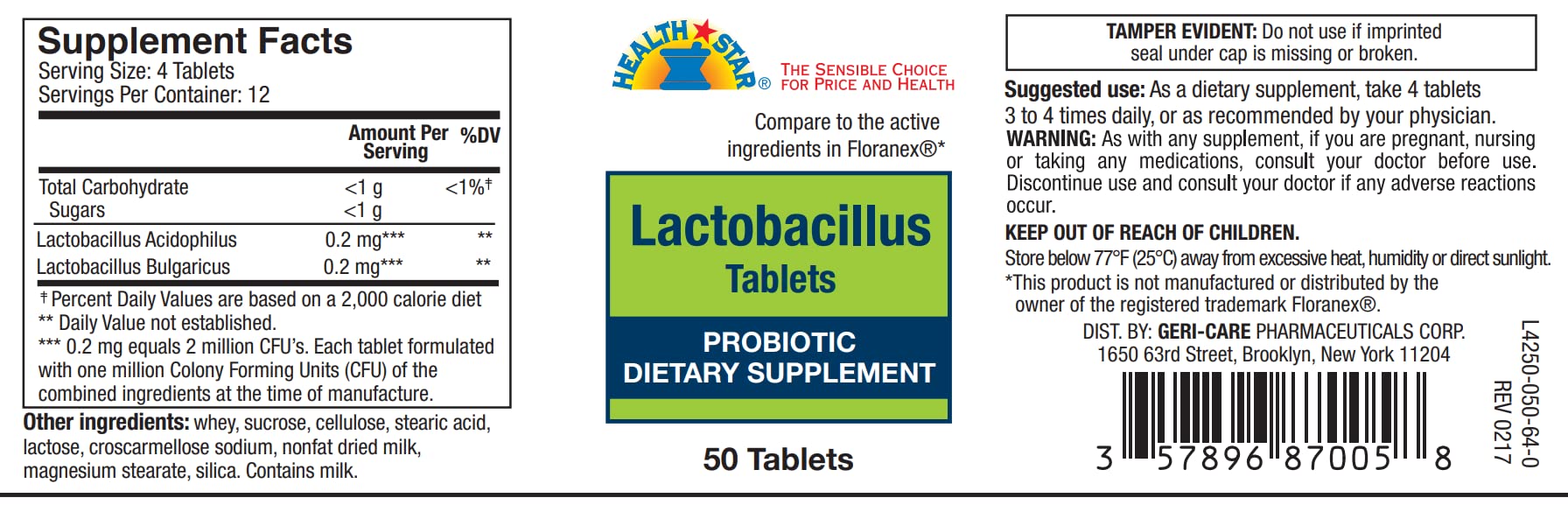 GeriCare Probiotic Lactobacillus, Support Digestive Health, Dietary Supplement Tablets, 50 Count (Pack of 1)
