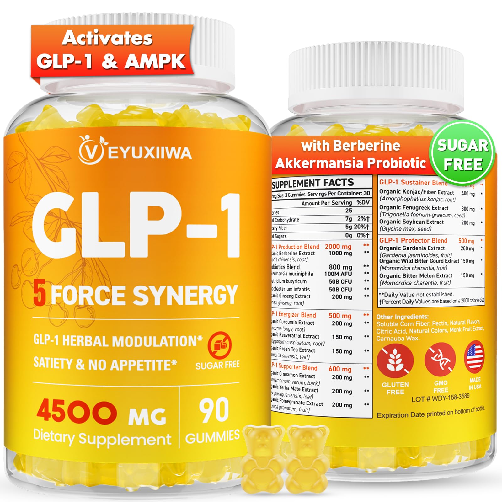 - COMPLETE GLP-1 SUPPORT GUMMIES: Our GLP-1 supplement gummies feature a powerful 5-in-1 blend, including GLP-1 production, modulation, stimulation, sustainer, protector, and probiotics (including Akkermansia & Berberine). these ingredients work synergistically to activate glp-1 and ampk, providing comprehensive support for your metabolism* and weight management* needs