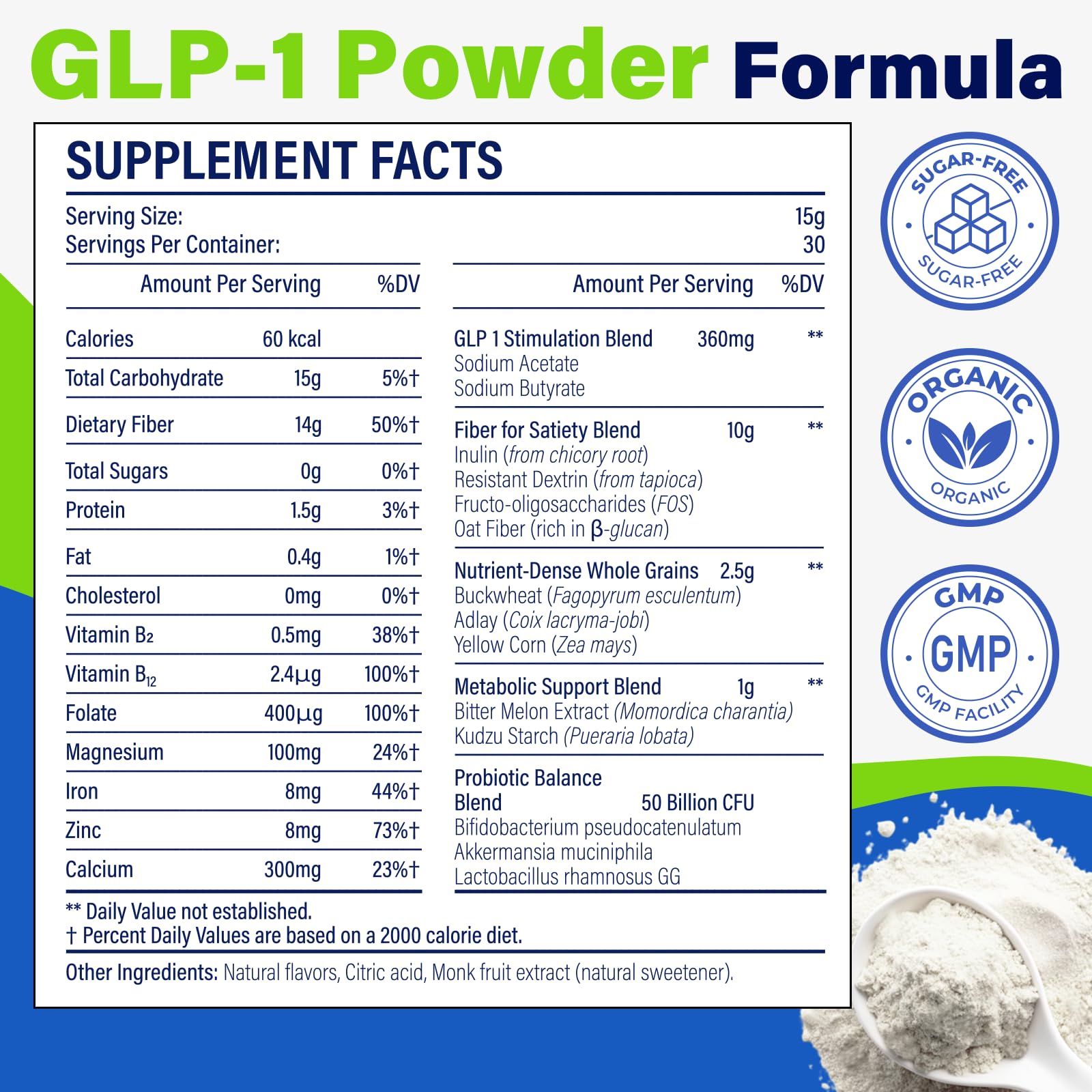 GLP-1 Supplement, GLP1 Supplements Women Naturally Gut GLP 1 Powder 1500MG Boosting Prebiotic Mix with Akkermansia Muciniphila Probiotic & High Fiber for Digestion, Energy, Overall Health, No Fillers