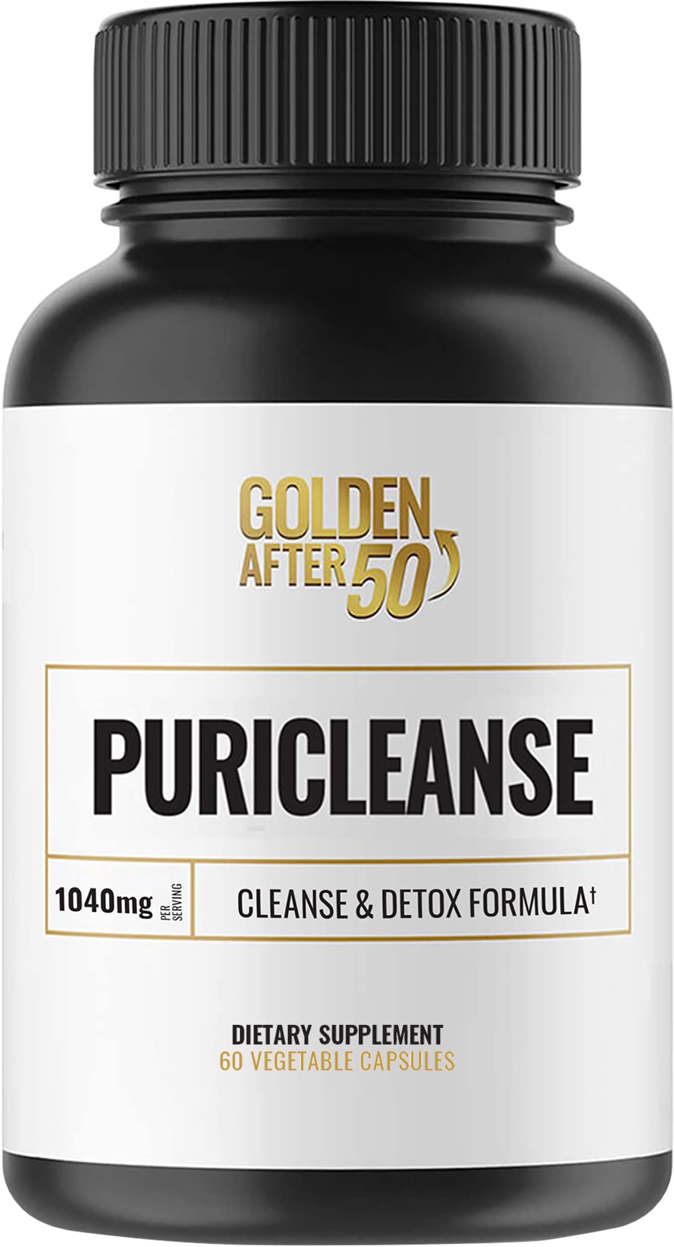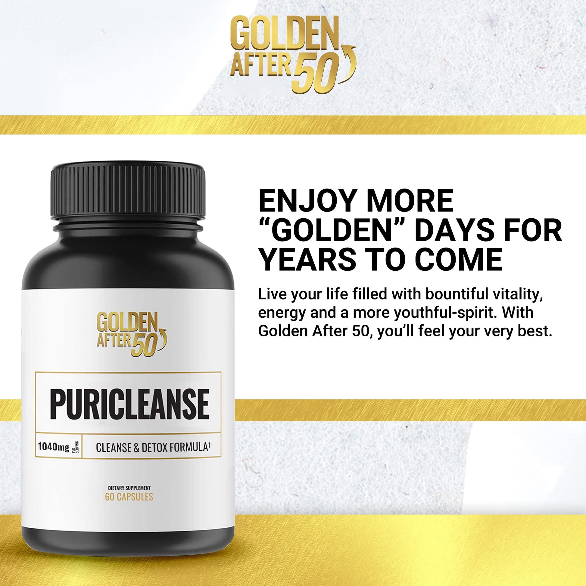 Golden After 50 PuriCleanse - Detox and Colon Cleanse Support - 60 Capsules, 1040mg - Gut Cleanse and Fiber Supplement with Senna Leaf Extract, Psyllium Husk Powder and Probiotics for Men and Women