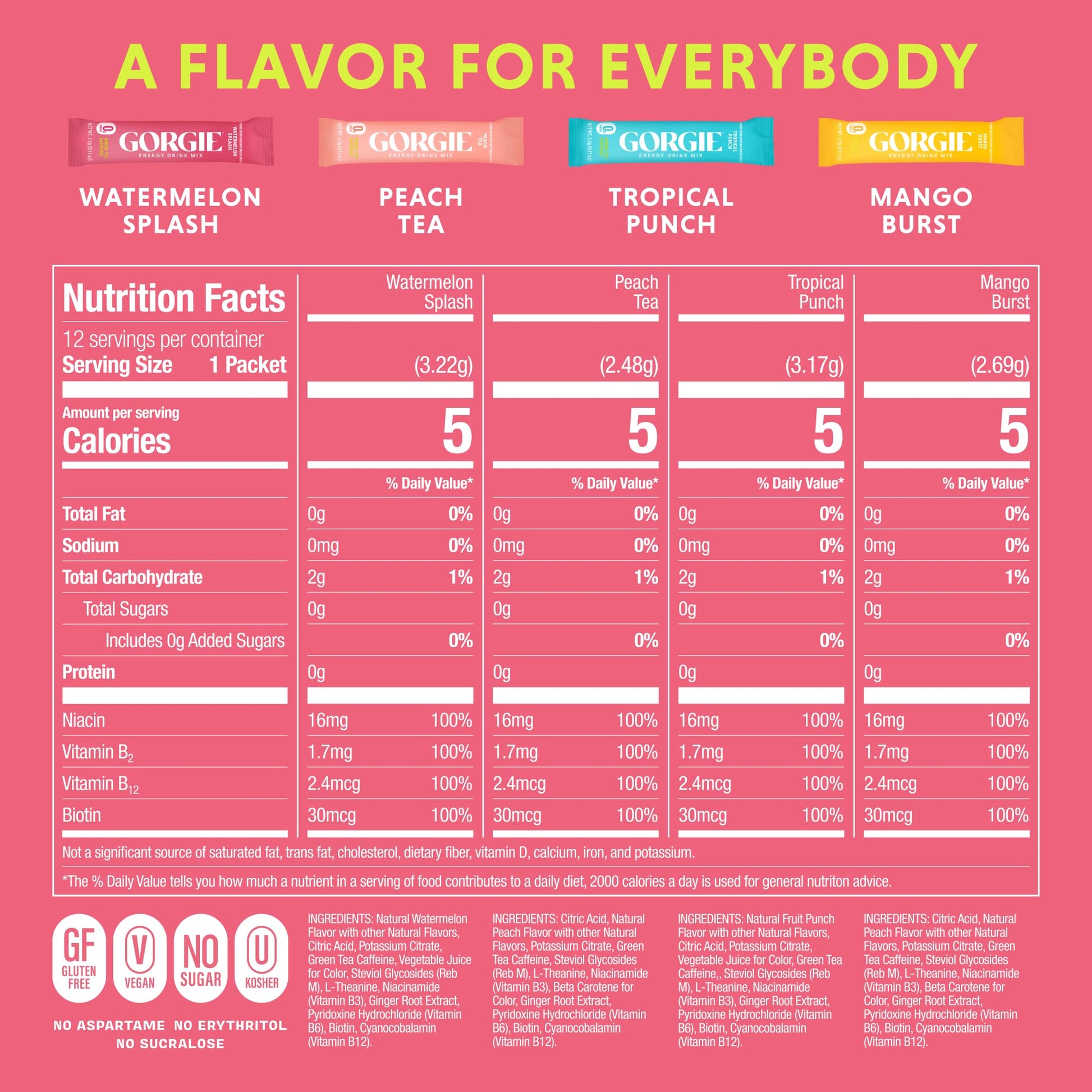 - Convenient: Same amazing energy, now in a grab-and-go packet. All the GORGIE you love, anywhere you want it.