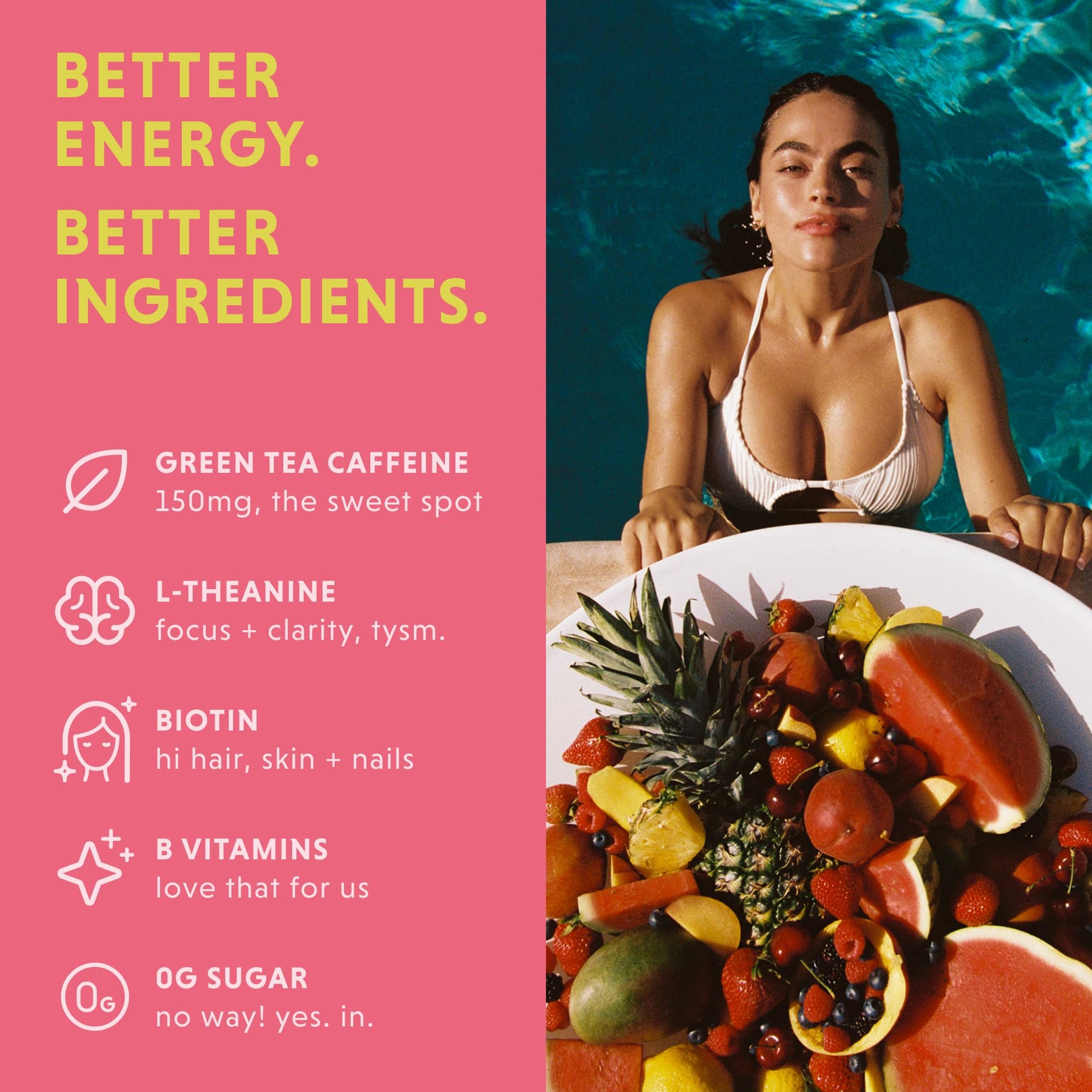 - Clean and Energizing Ingredients: GORGIE sugar-free energy drinks contain 150mg of green tea caffeine, along with Vitamins B6 and B12, Biotin, and L-Theanine for a clean and nourishing energy boost.