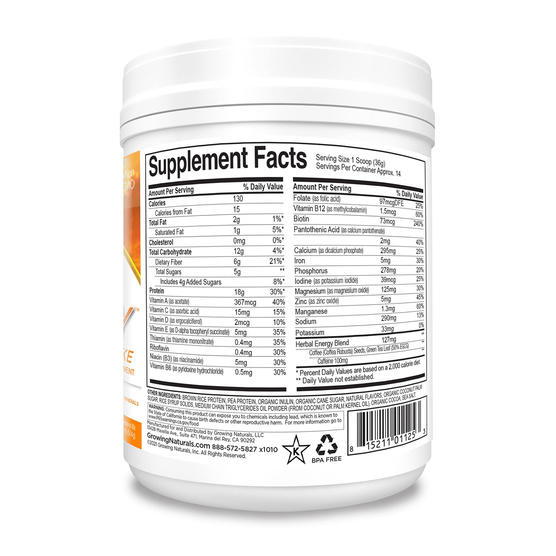 Growing Naturals All Natural Plant Based Protein, One & Done Super Shake, 18g Protein with Non-GMO High Fiber and Gluten Free, A.M. Energy 1 Pound (Pack of 1)