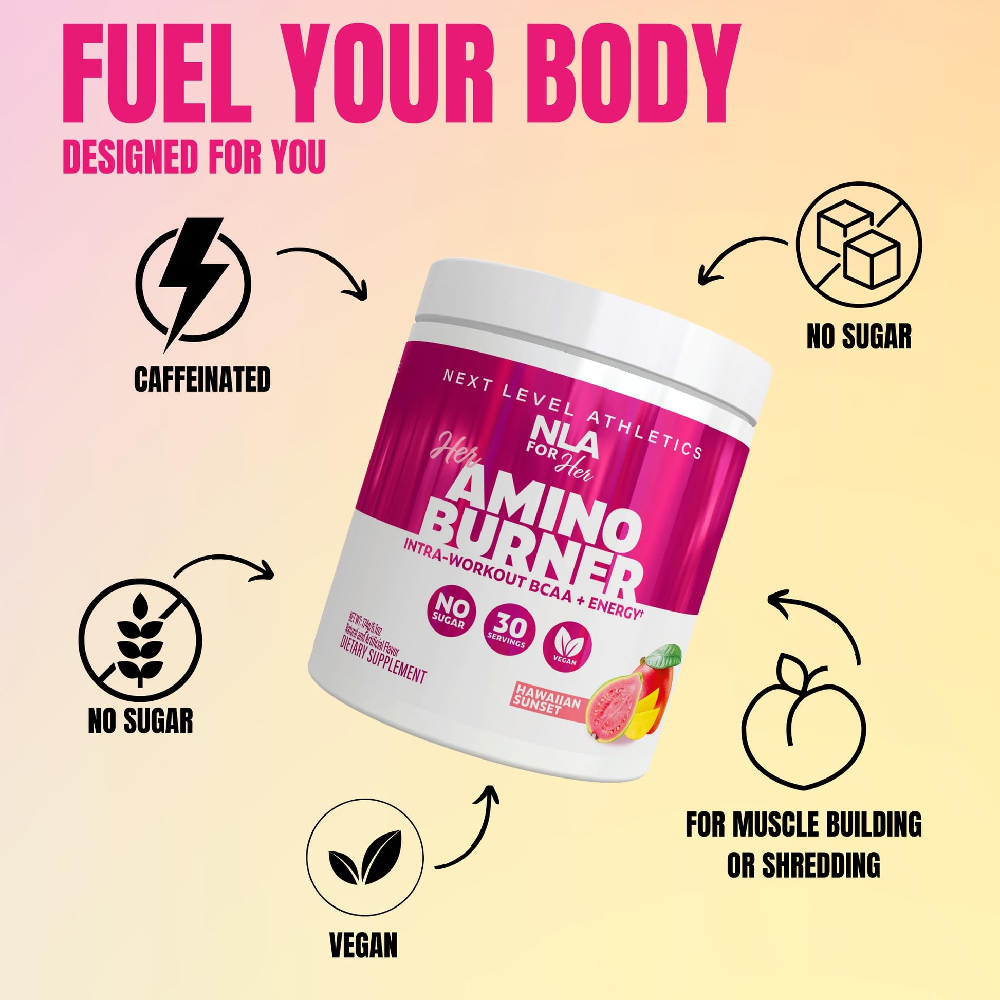- ๐ช๐ผ HER THERMOGENIC AMINO (30 Servings - Hawaiian Sunset) is a unique blend of Branch Chain Aminos Acids + Caffeine specifically designed to help you reach your goals. Take before, during, or after intense workouts!