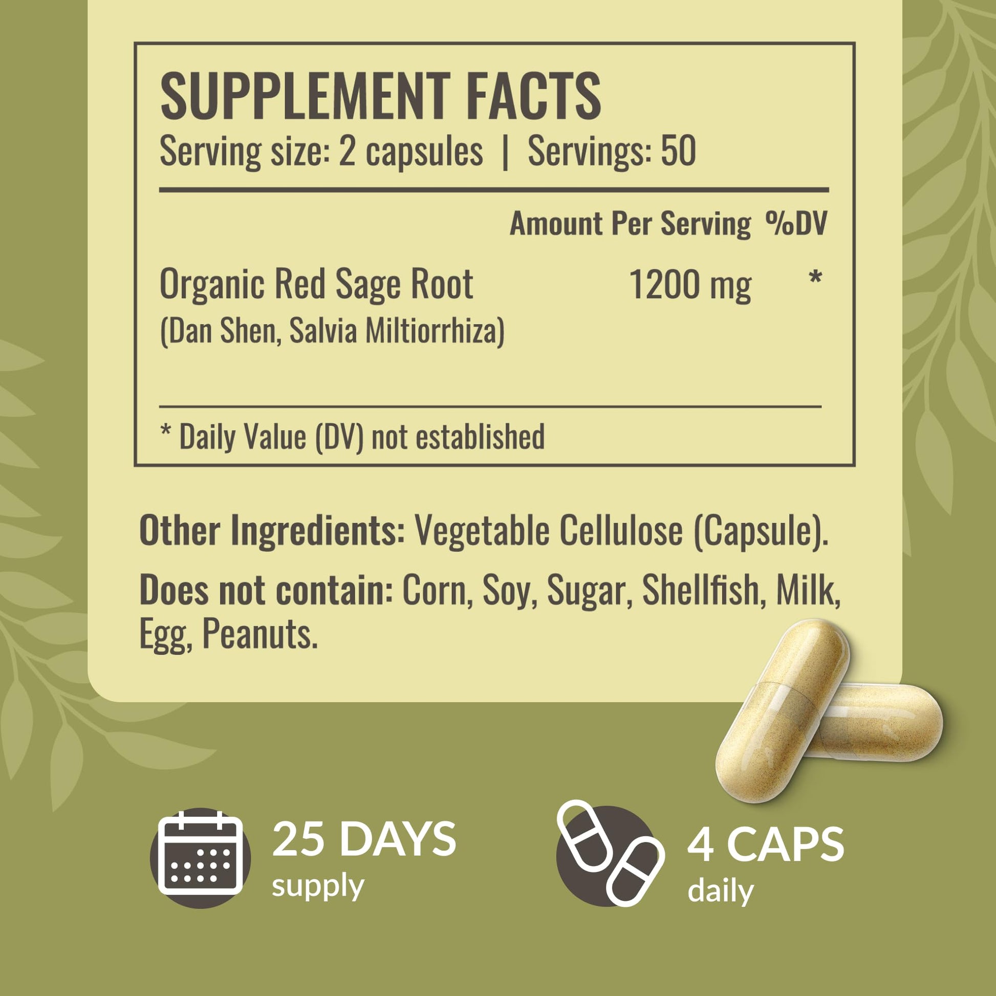 - Only Two Ingredients: Our Sage supplement features a simple, plant-based formula with just two ingredients - Red Sage powder and a vegetable cellulose capsule. Made purely vegetarian, with an easy-to-digest formula with no artificial additives.