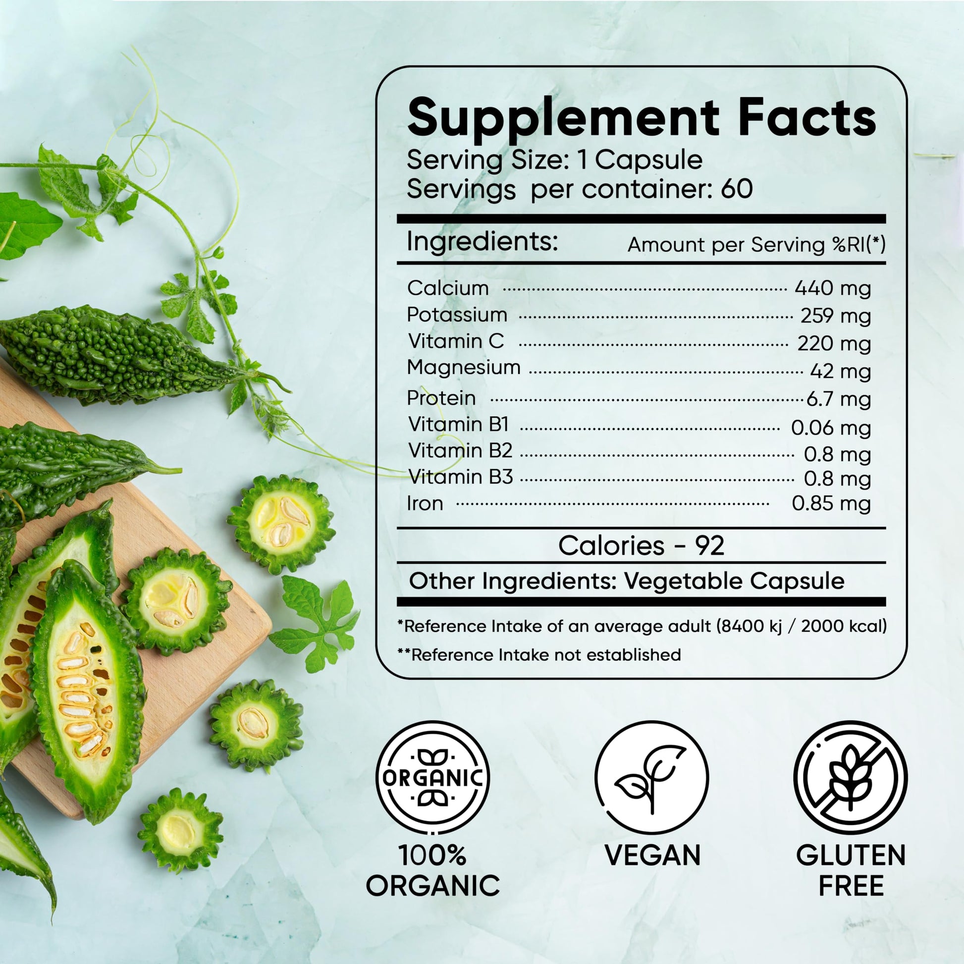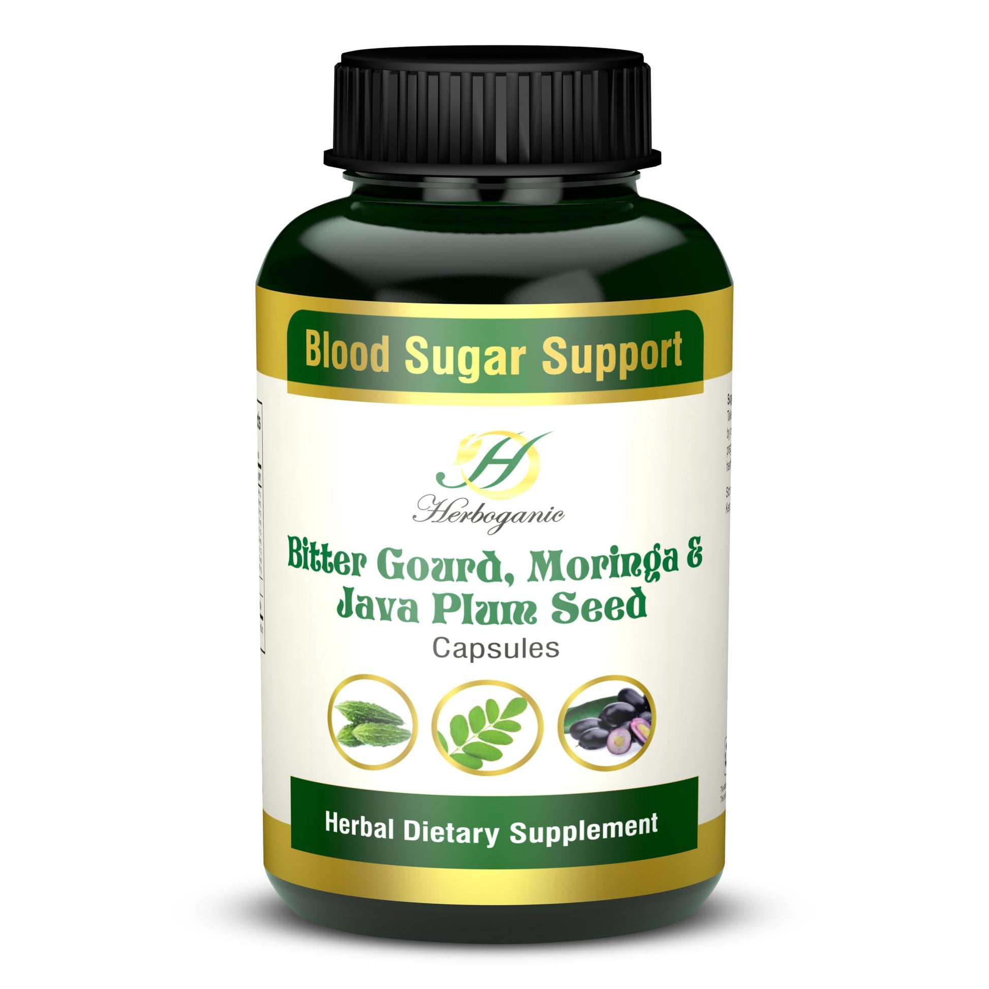 HERBOGANIC Bitter Gourd Moringa and Java Plum Seed Capsules | 500mg |All Natural Detoxification | 60 Capsules