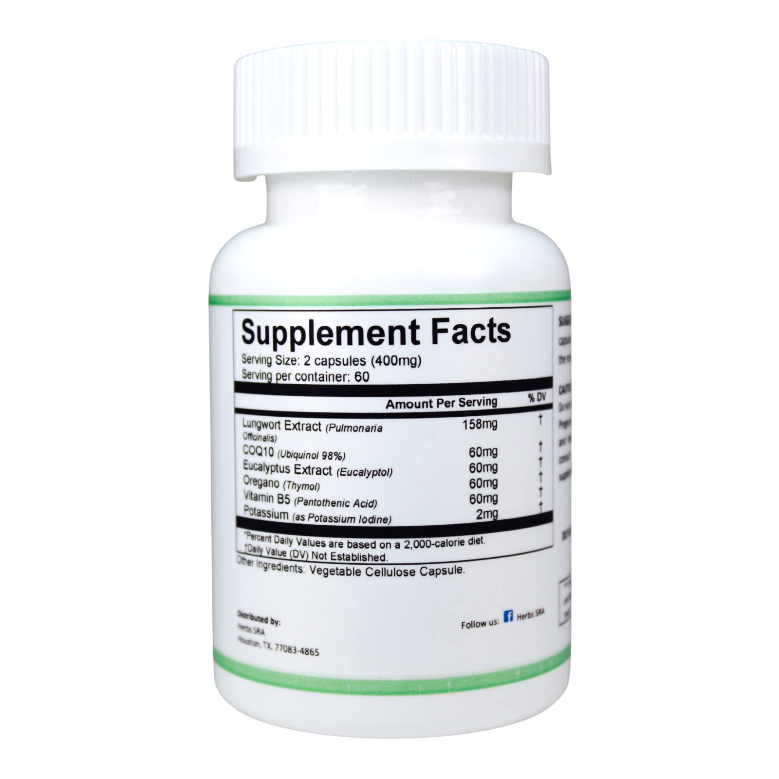- Lungwort, CoQ10, Eucalyptus, Oregano, Vitamin B5