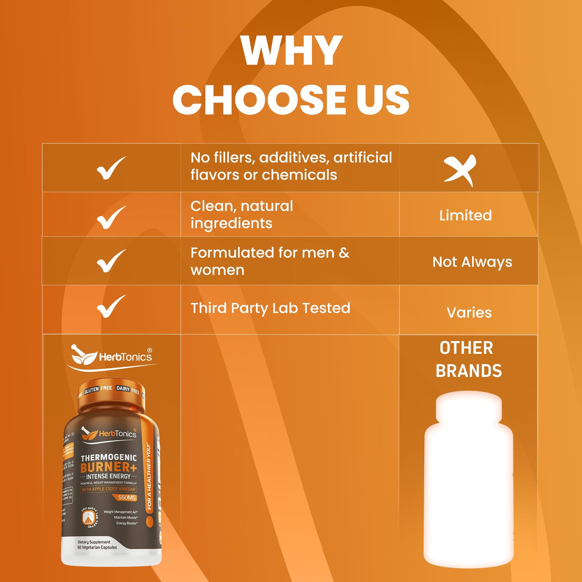 Herbtonics Thermogenic Fat Burner for Men & Women - Fast Acting Weight Loss Pills for Women, GLP-1 Supplement for Weight Loss - Appetite Suppressant & Metabolism Booster | 60 Veg Capsules