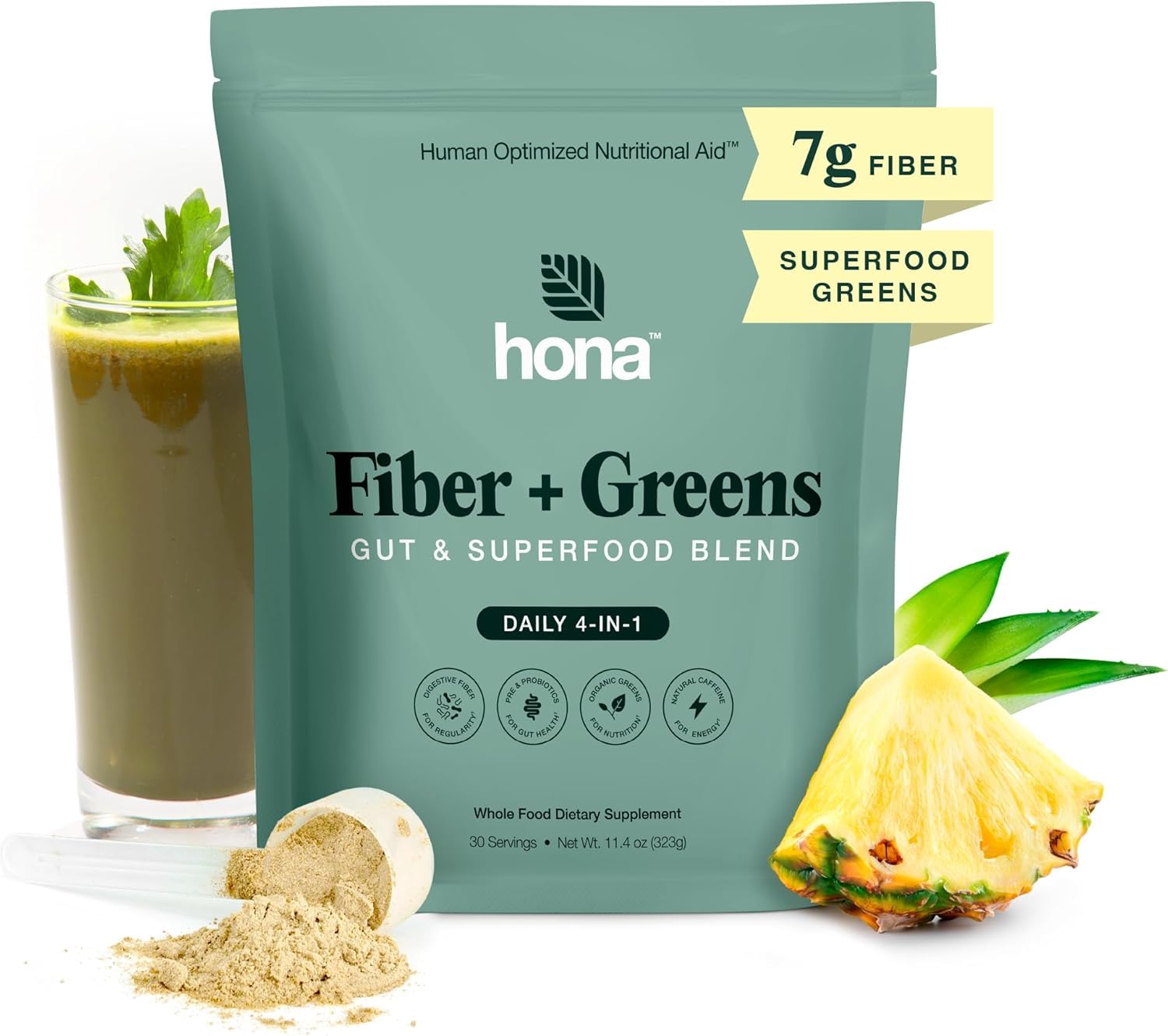 - CLEAN, SIMPLE INGREDIENTS: Made with quality, naturally derived ingredients, Hona’s Greens & Fiber is free from artificial colors, flavors, or sweeteners. Each ingredient is chosen to provide a naturally nourishing greens drink experience, supporting those who seek a cleaner choice for their daily wellness routine and a wholesome approach to nutrition.