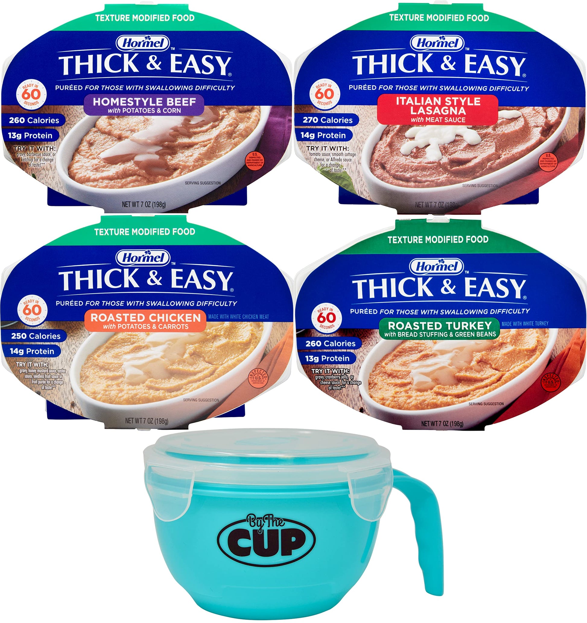 Hormel Thick Easy Pureed Meals Variety Roasted Chicken Beef Lasagna and Roasted Turkey with By The Cup Serving Bowl