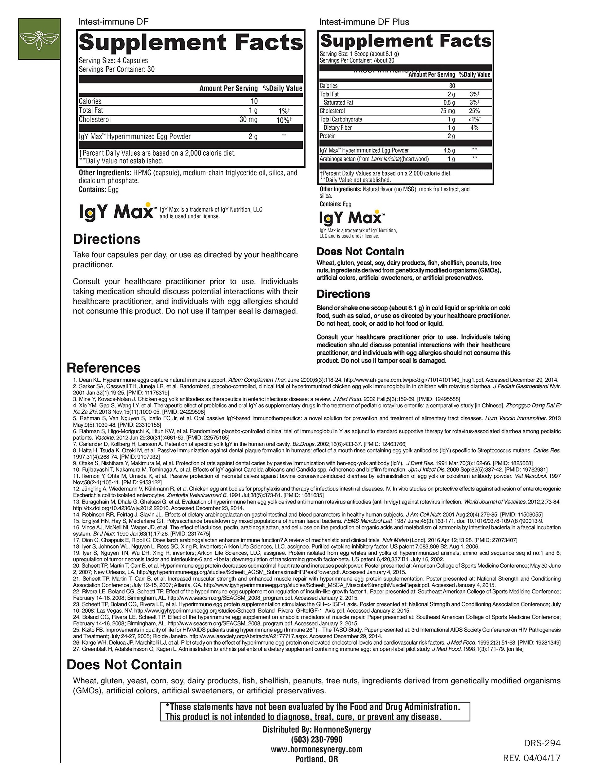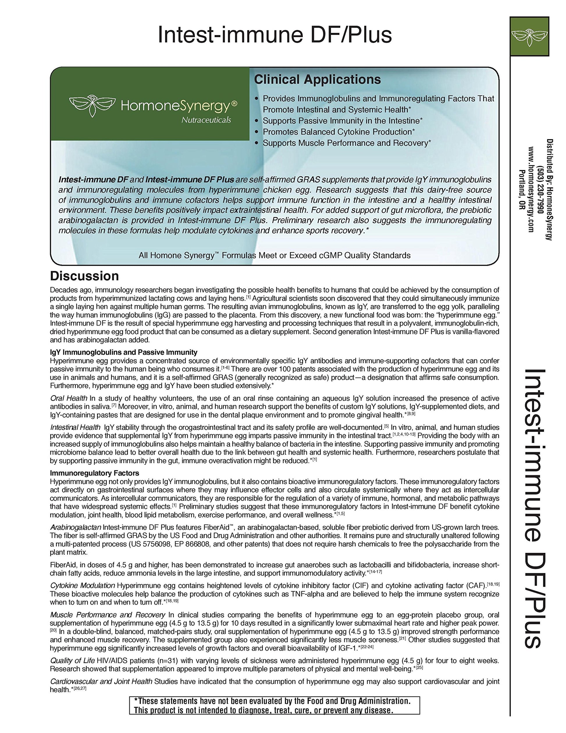HormoneSynergy Intest-Immune DF Plus - Dairy-Free IgG Immunoglobulin Supplement with Arabinogalactan - Vanilla Flavor - Supports Intestinal Health, Balanced Cytokines & Histamine Ratio - 30 Servings