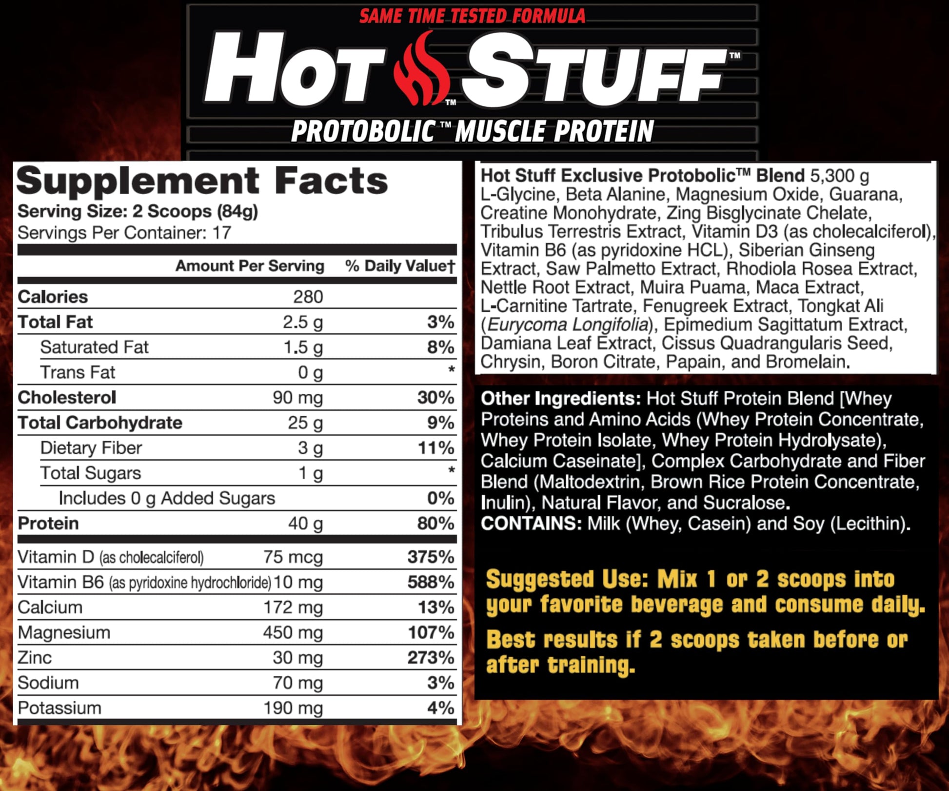 - 40g Protein including Hydrolyzed Whey, Whey Isolate, and Casein