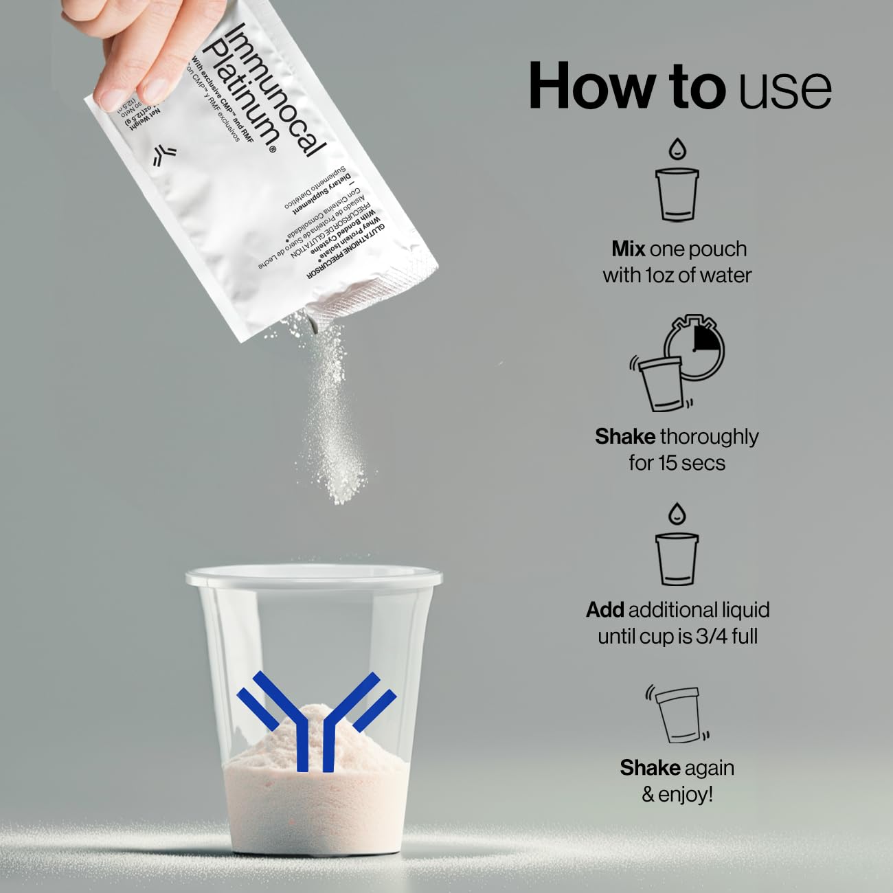 - IMMUNOCAL PLATINUM: A patented whey protein isolate with CMP & RMF - formulated to help boost cell function and vitality for optimal immune health.